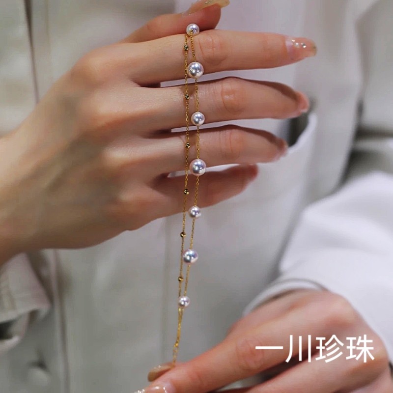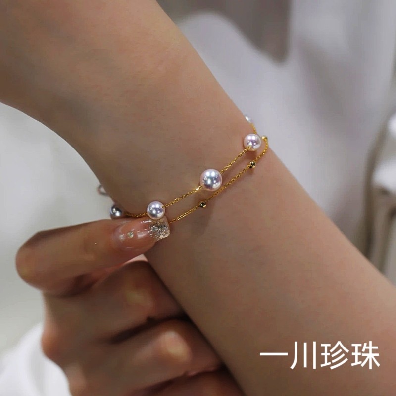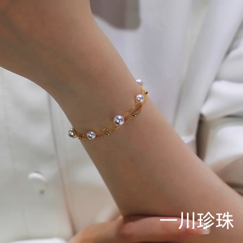 AKOYA海水珍珠手链18K金双层手串满天星轻奢手饰显温柔得体送礼