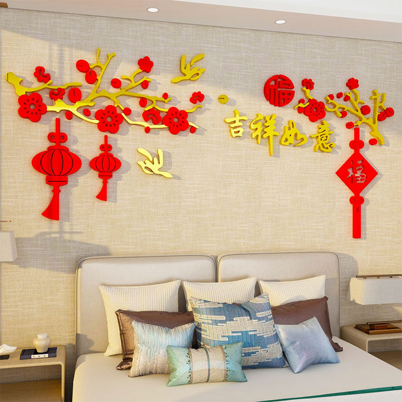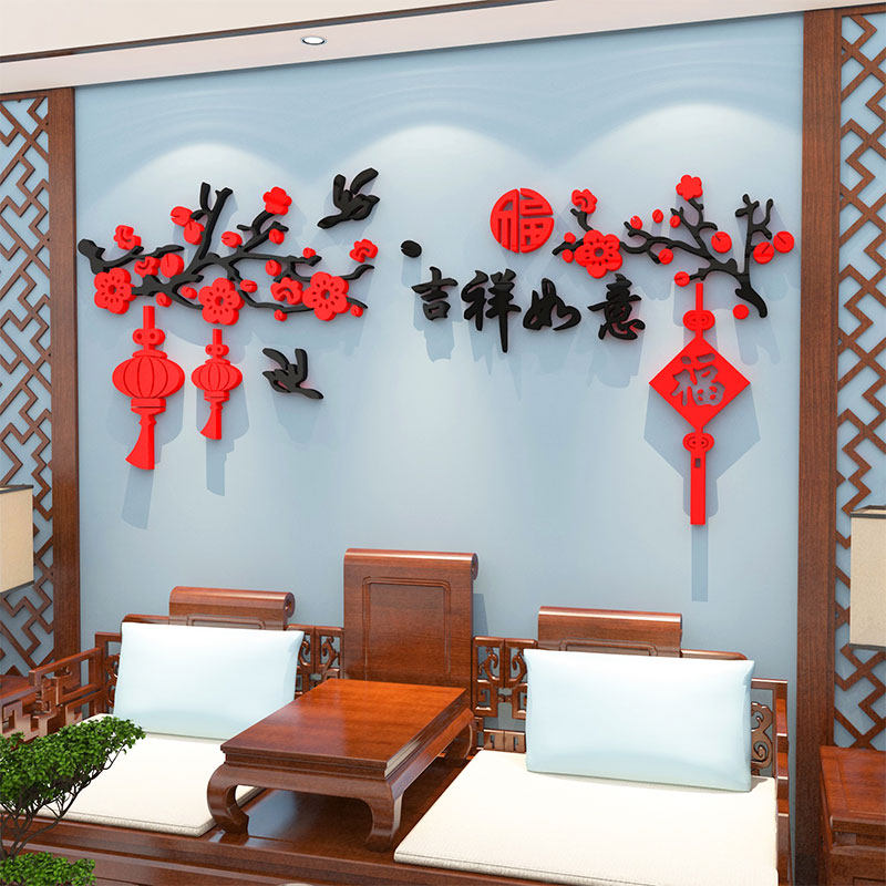 2026新年装饰电视机背景墙贴纸画自粘过马春节氛围布置上方挂件