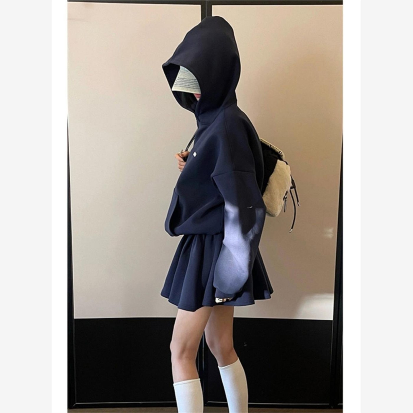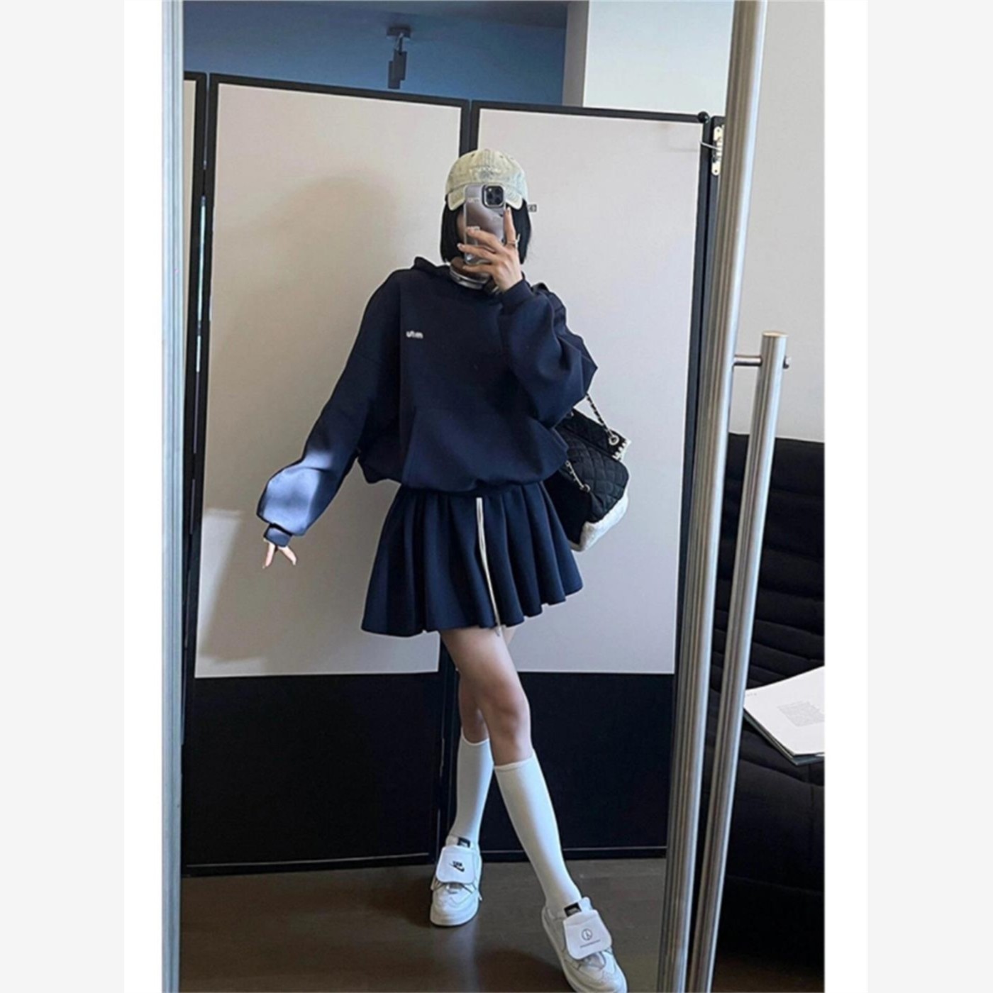 时尚休闲套装女春秋miu系高级感盐系连帽卫衣显瘦百褶短裙两件套