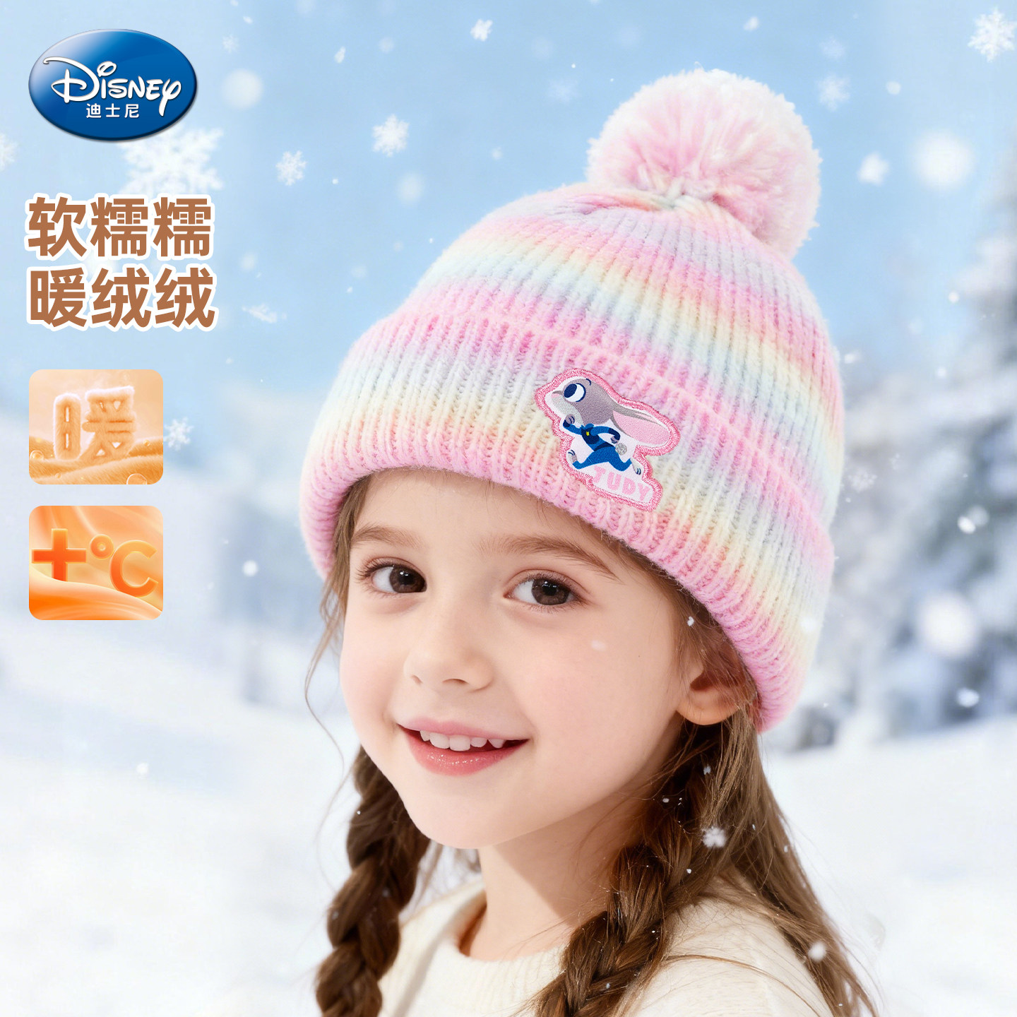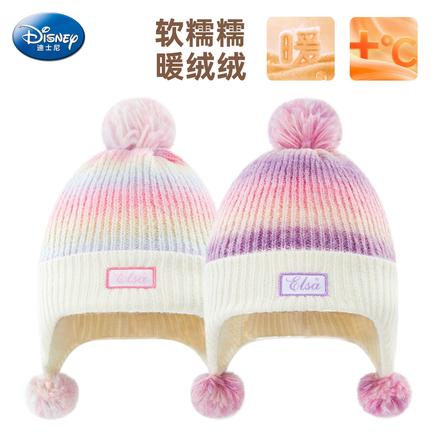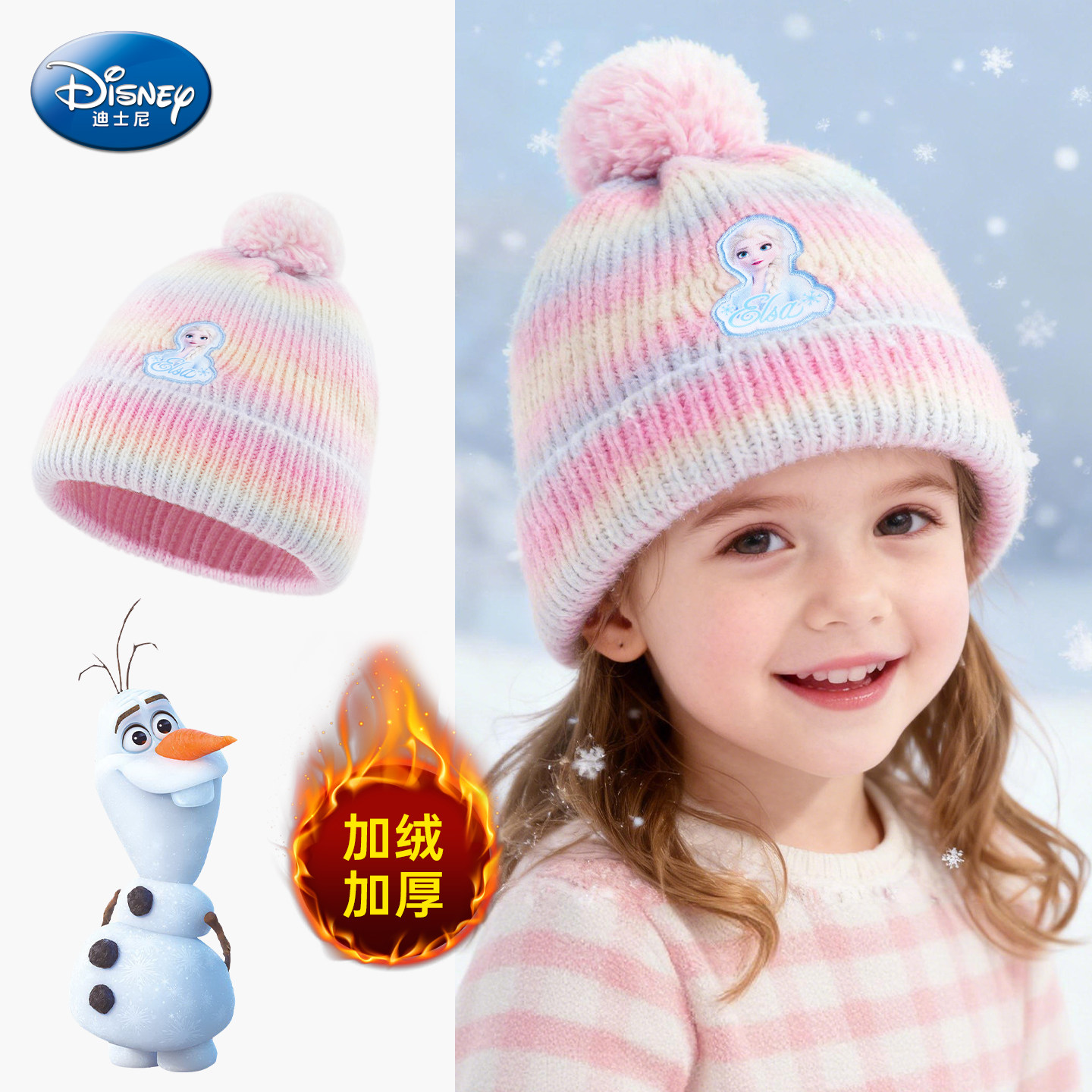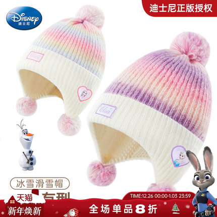 迪士尼艾莎公主帽子女童帽子2025新款冬儿童针织帽女孩防寒护耳帽