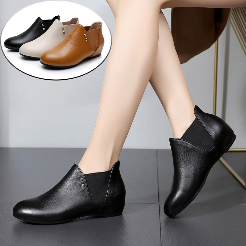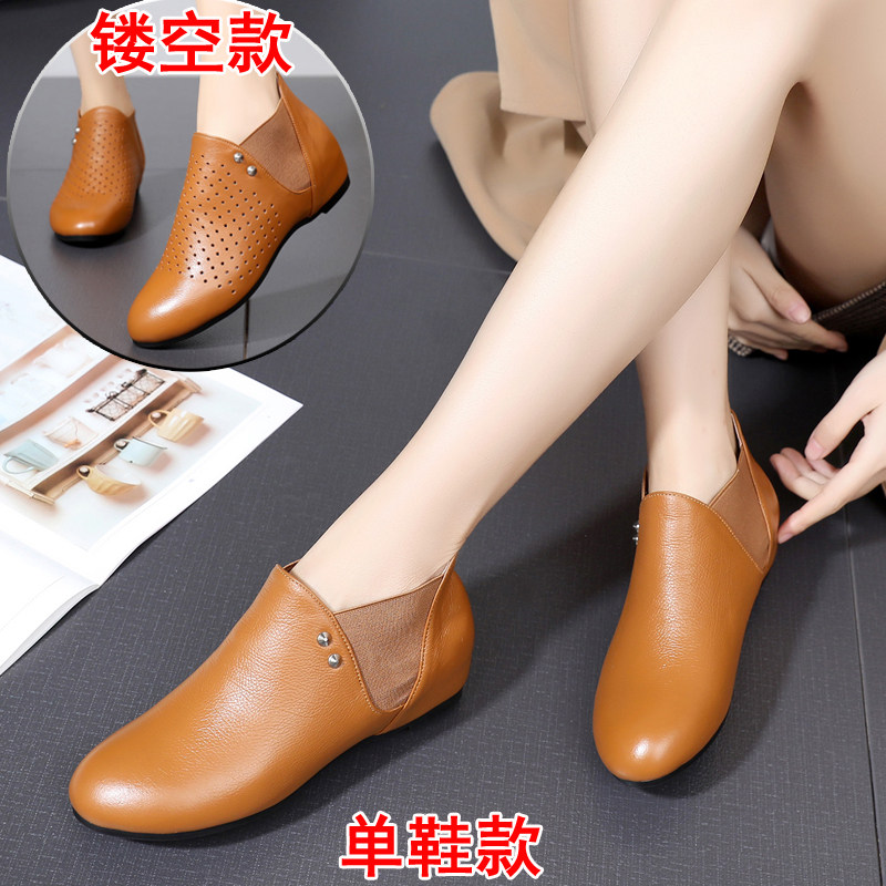 春秋女靴子真皮平底小短靴镂空洞洞女鞋及踝靴软底妈妈鞋小码3334