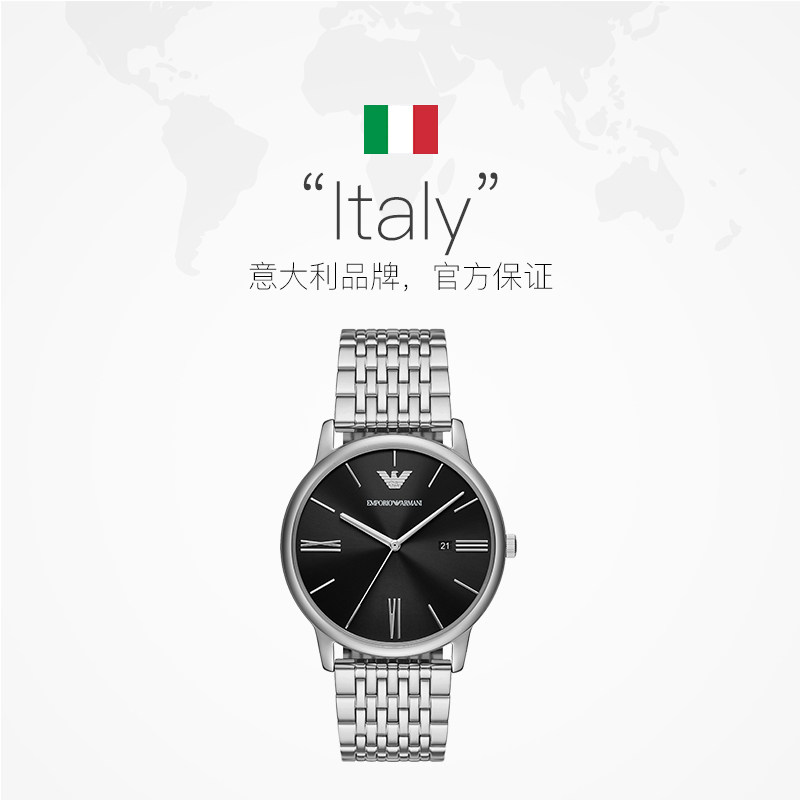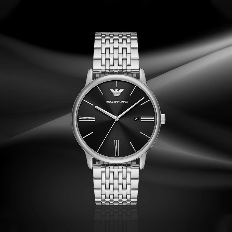 阿玛尼新款商务黑色石英男表