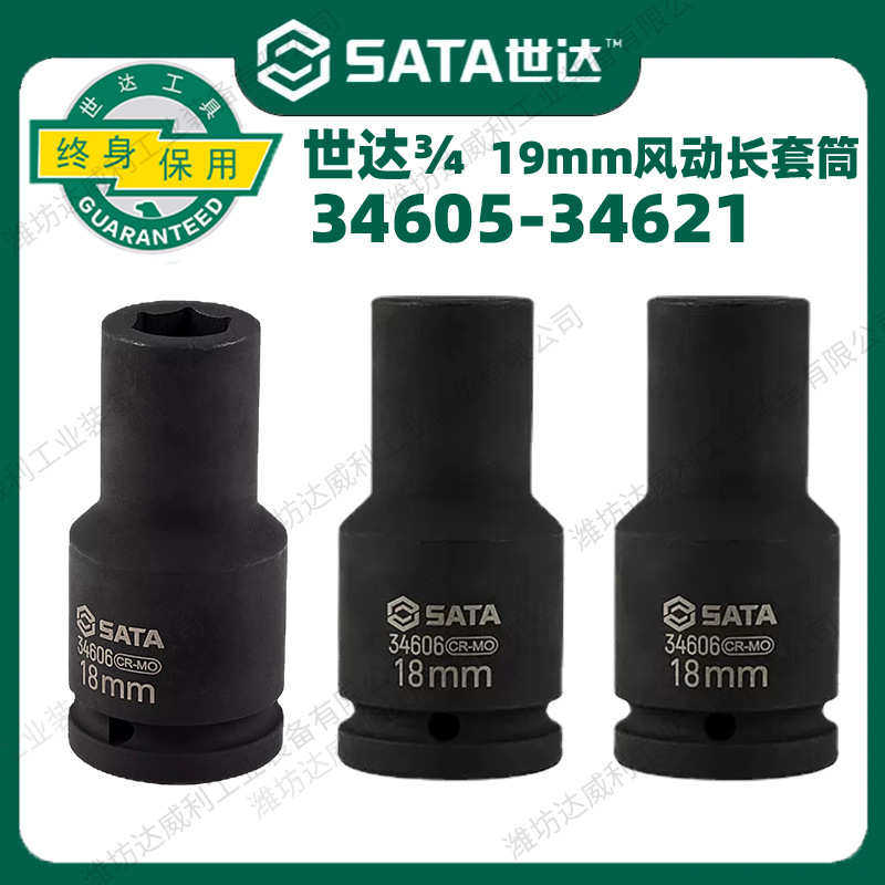 世达重型套筒3/4风炮头加长六角风动中风炮套筒头气动电动扳手用