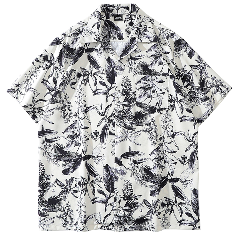 悟空有货复古vintege满印短袖花衬衫男夏季宽松情侣休闲衬衣外套