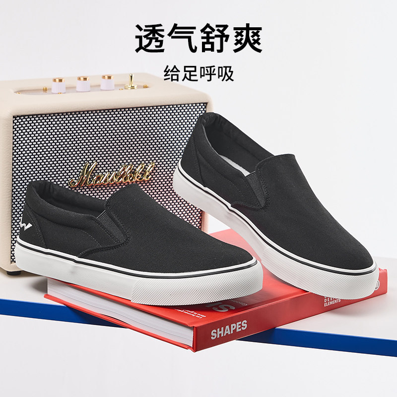 热风男鞋2026年春季新款男士厚底百搭黑色布鞋透气舒适懒人鞋子