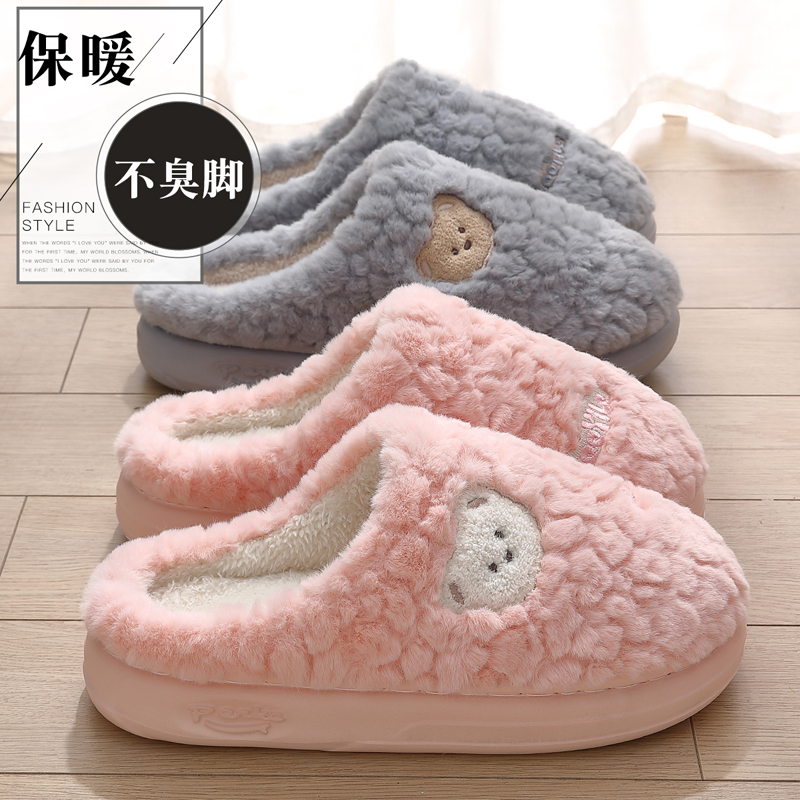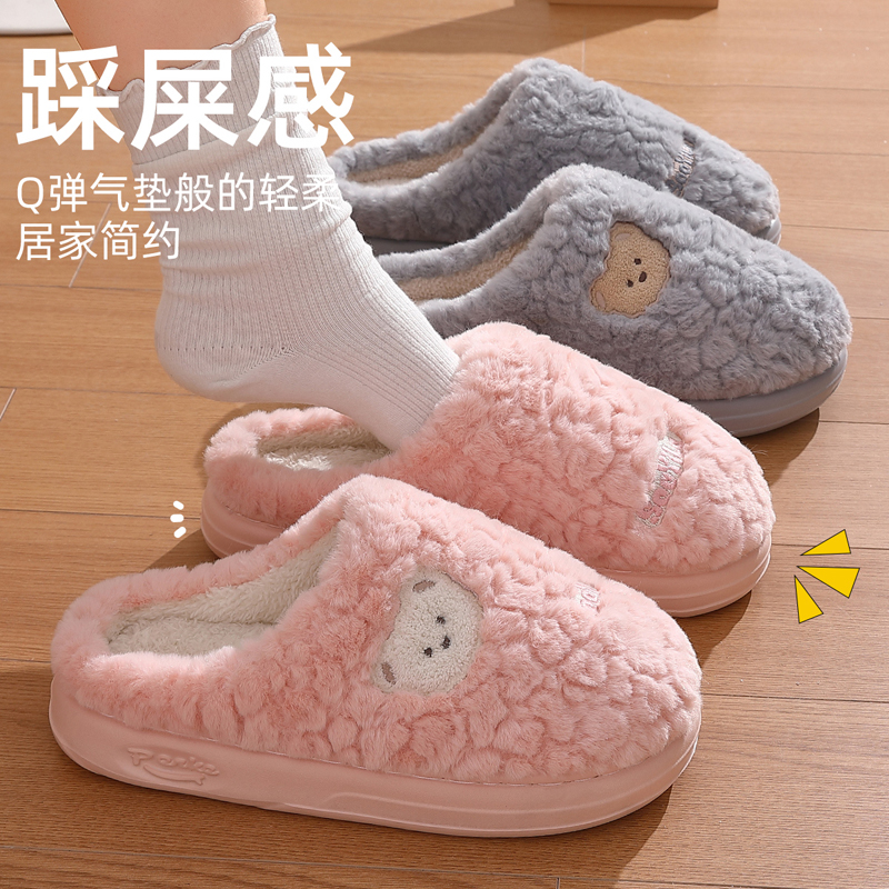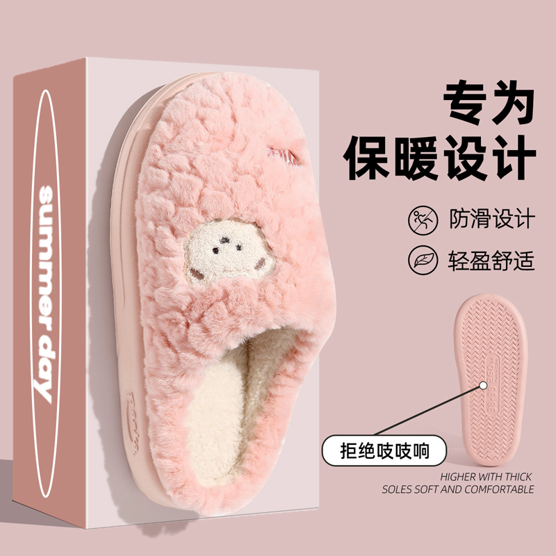 可爱棉拖鞋女秋冬季2025新款居家防滑室内保暖毛毛加绒月子鞋冬天