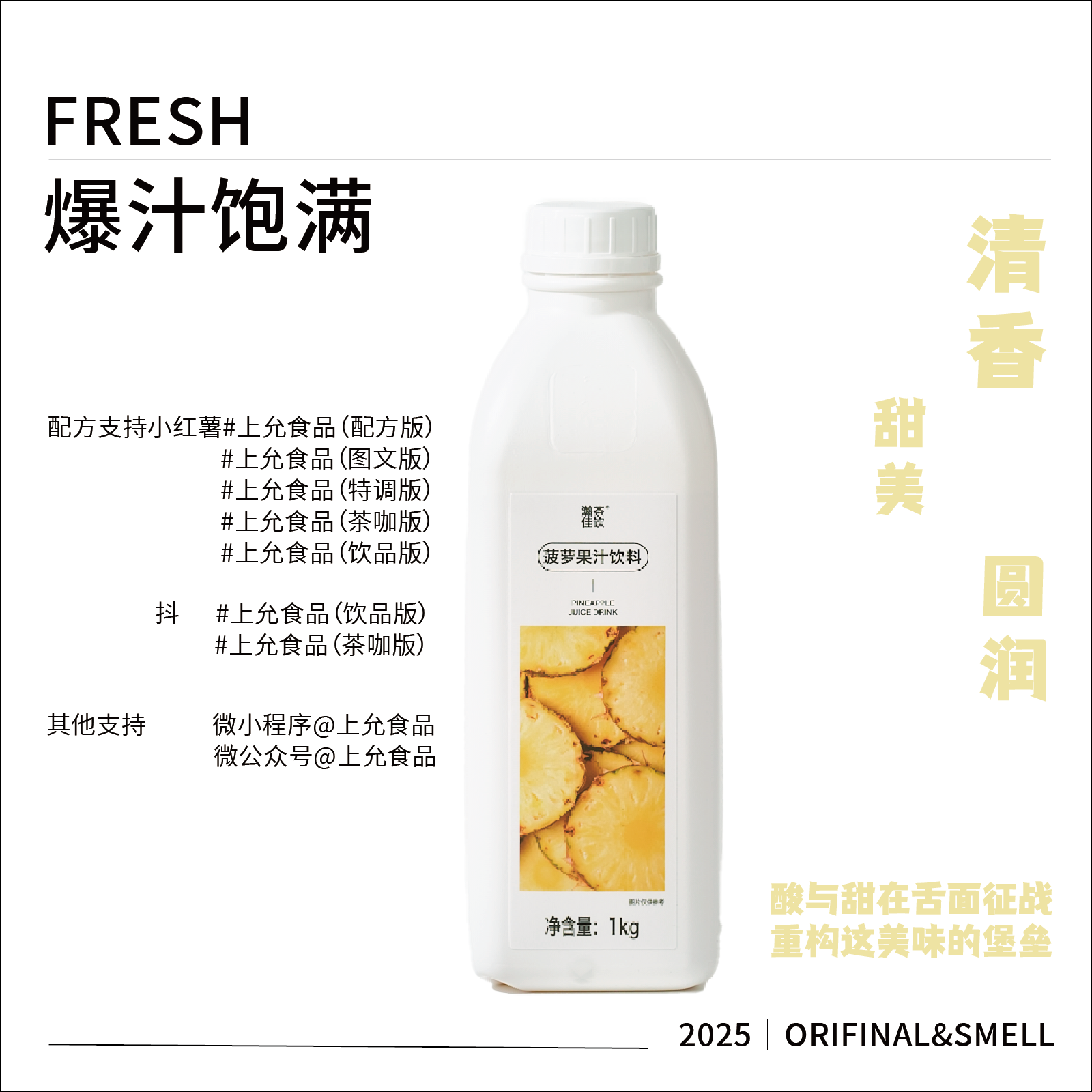 菠萝果汁饮料 瀚茶佳饮 鲜活菠萝汁咖啡奶茶鸡尾酒专用浓缩物料