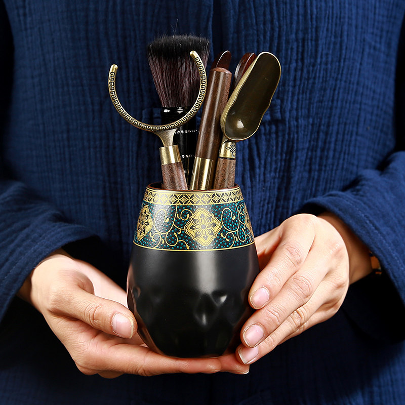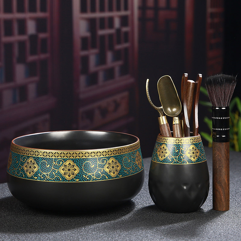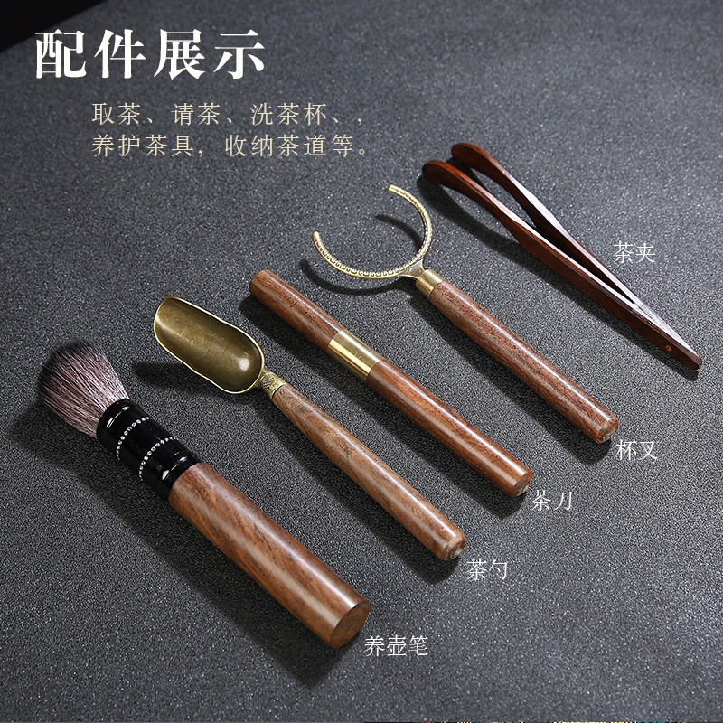茶具配件黑檀木茶道六君子茶桶茶盘台泡茶工具茶叶罐茶洗茶缸建水