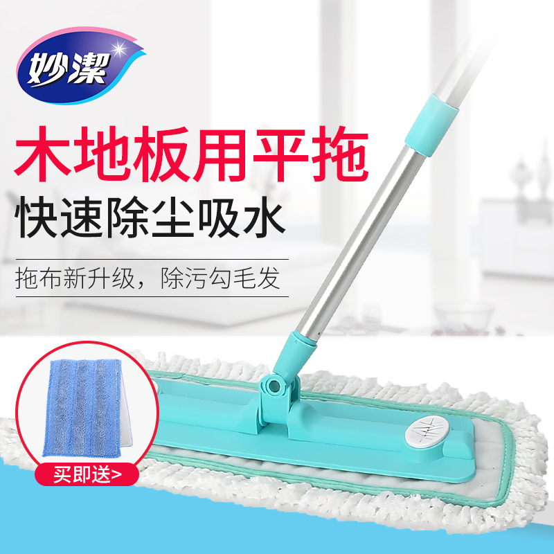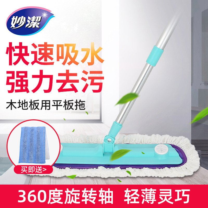 妙洁平板拖把木地板家用旋转大号懒人静电吸尘粘贴式拖把墩布黏贴