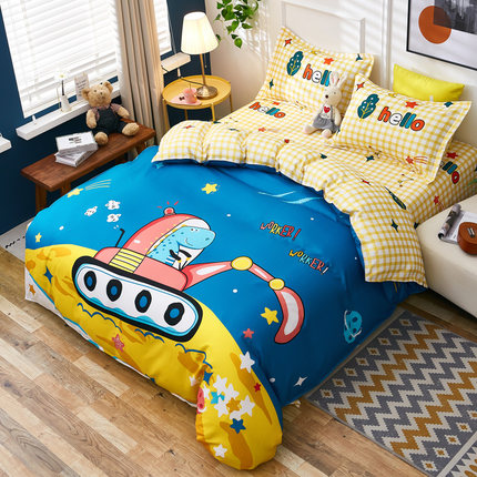 四件套纯棉全棉感被套被罩床单儿童学生宿舍男女孩床品三件套床笠
