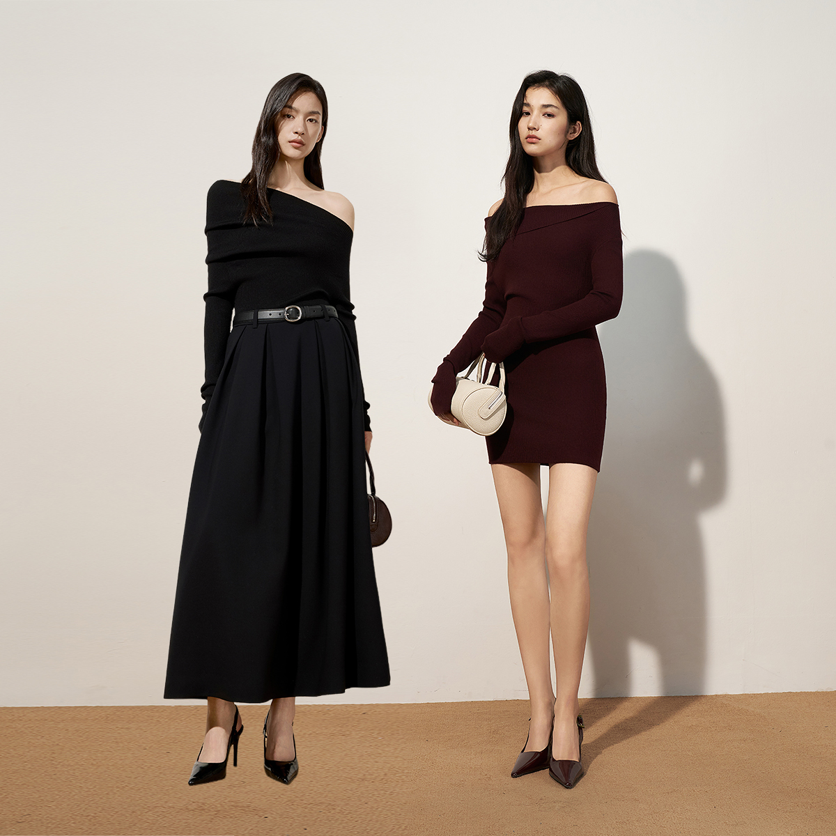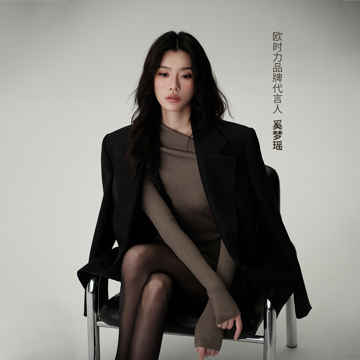 【奚梦瑶同款】OCHIRLY欧时力羊毛斜肩两穿毛织连衣裙25秋冬尖货*
