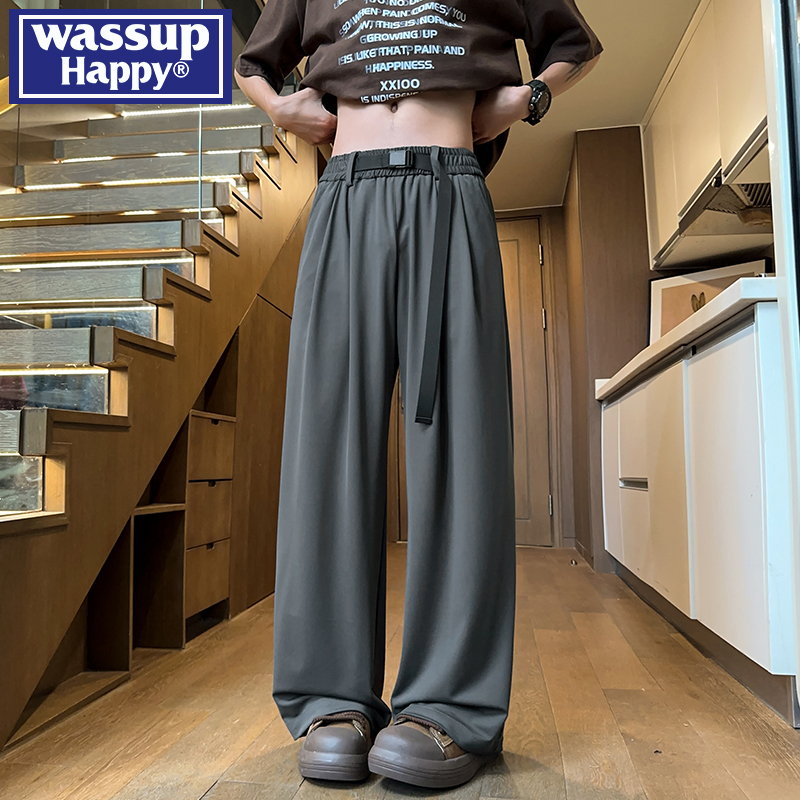 wassup happy冰丝西裤男夏季薄款潮流垂坠感直筒裤运动休闲长裤子