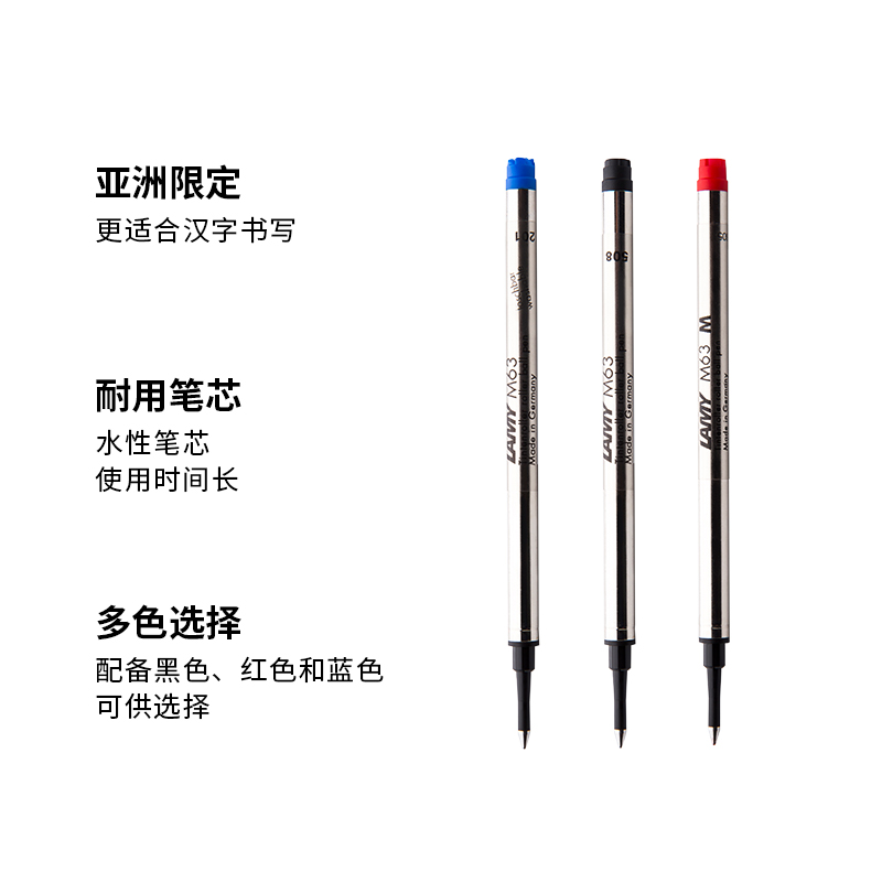 LAMY凌美宝珠笔笔芯 官方旗舰店M63中性水笔芯配件签字笔适用0.5mm/0.7mm黑色蓝色一次性替换装