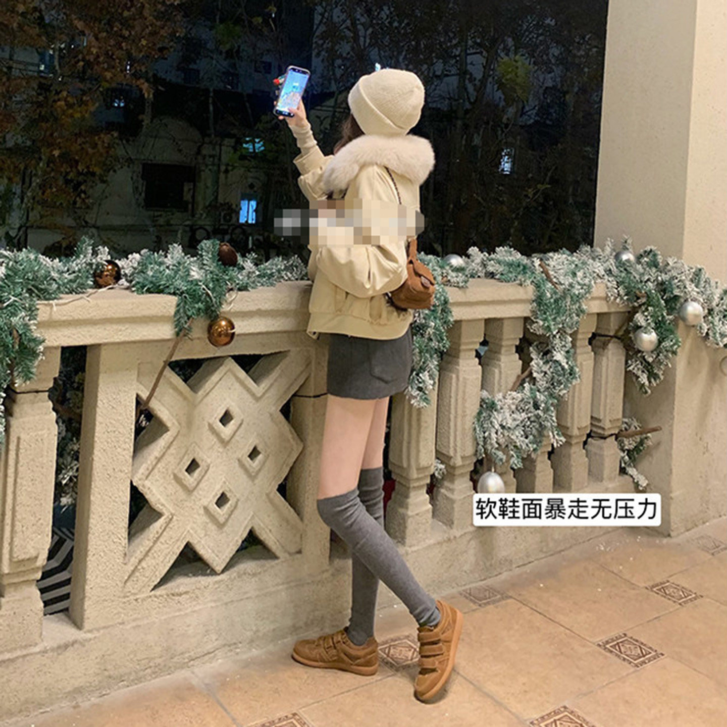 羊皮~内增高舒适德训鞋女2026春季复古魔术贴圆头板鞋运动休闲鞋