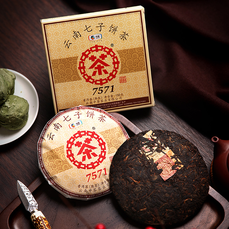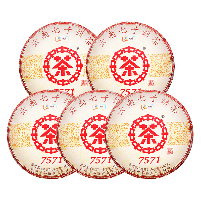 中茶云南普洱茶经典7571普洱茶熟茶150g/饼 整提5饼装 中茶旗舰店