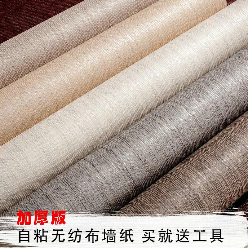 日式亚麻布纹自粘墙纸素色卧室温馨G无纺布壁纸纯色防水背景墙家