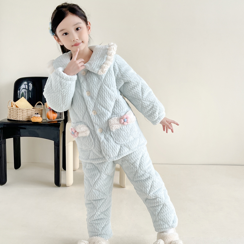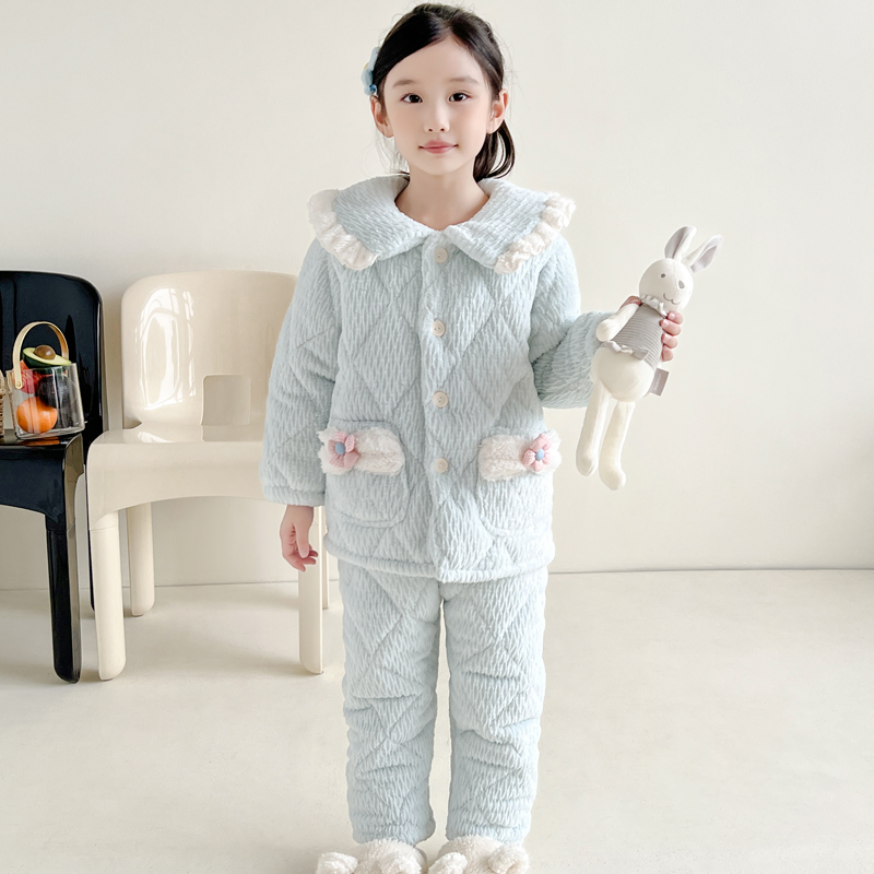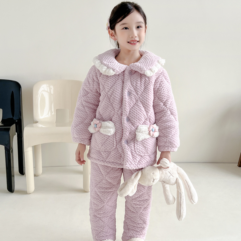 儿童睡衣可爱女童加厚夹棉法兰绒睡衣套装小孩宝宝家居服保暖棉袄