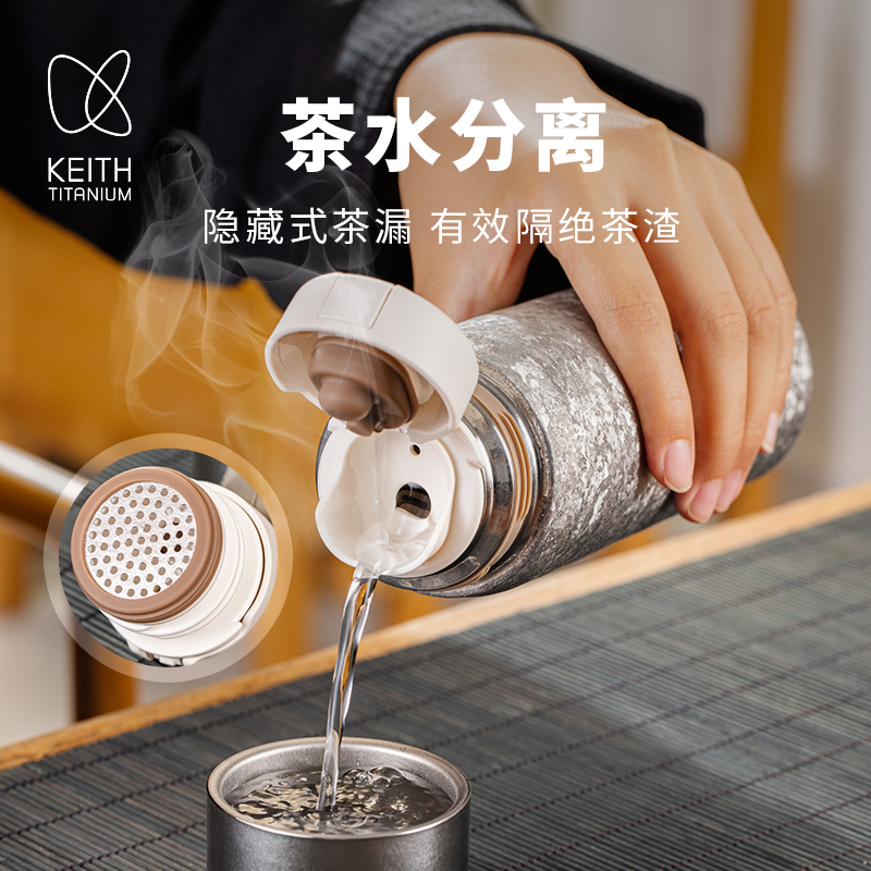 【新品】KEITH铠斯纯钛冰花真空保温保冷杯双层防烫自带茶隔430ml