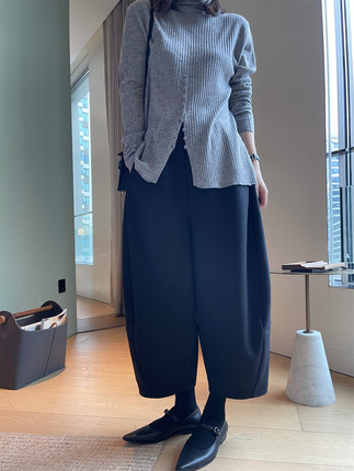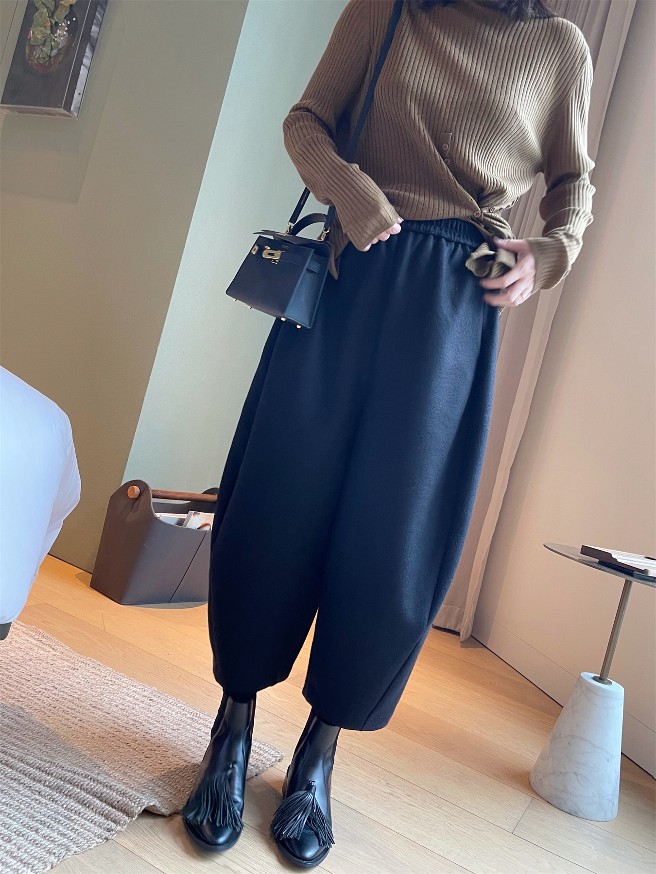 MK Design秋冬羊毛加厚休闲松紧腰9分香蕉灯笼裤哈伦阔腿裤