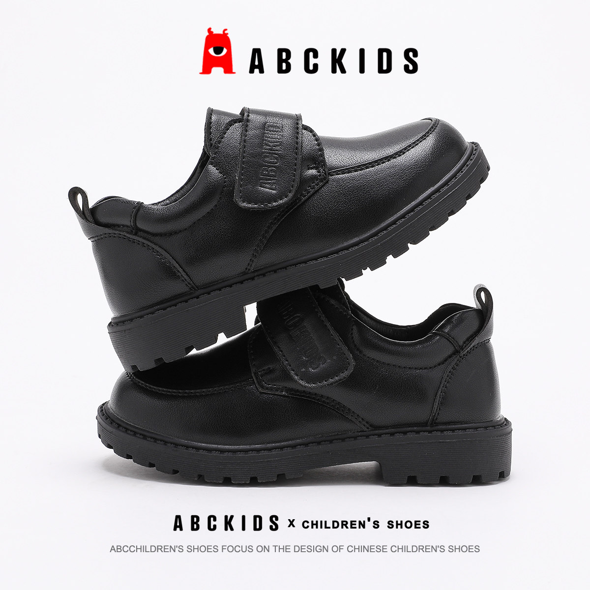 abckids童鞋男童2025春秋新款鞋子女童时尚演出鞋黑色软底皮鞋