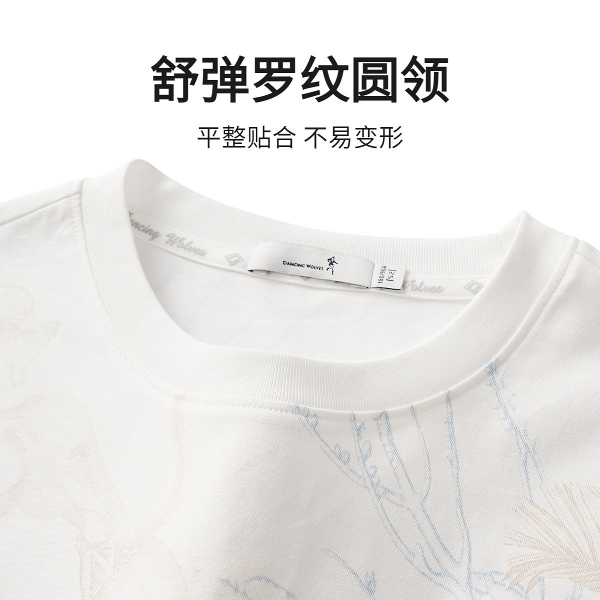 【7A抗菌】与狼共舞圆领短袖T恤男2025夏季新款时尚满印凉感上衣