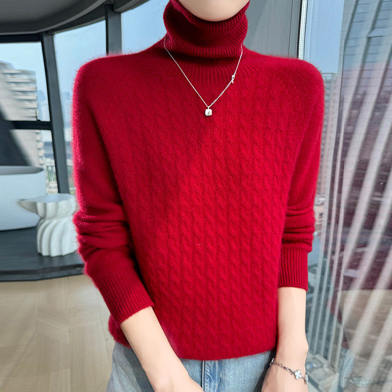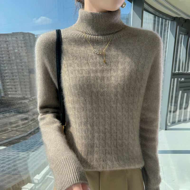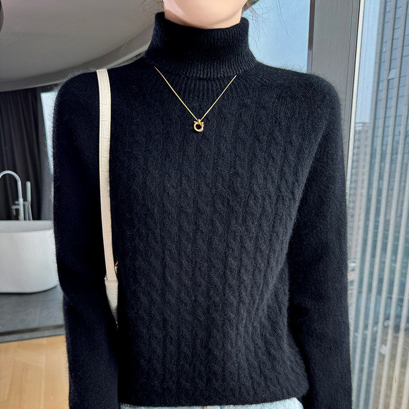 鄂尔多斯市冬装加厚羊毛衫女保暖宽松内搭毛衣高翻领针织羊绒衫女