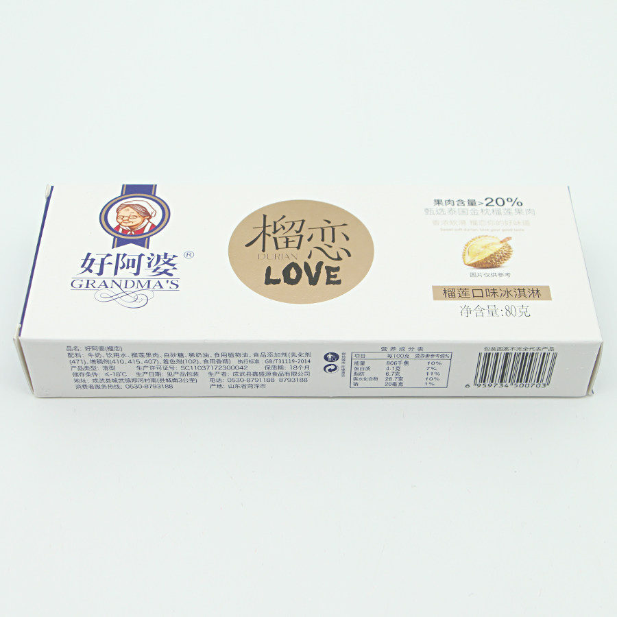 中国好阿婆榴莲水果冰淇淋-18℃