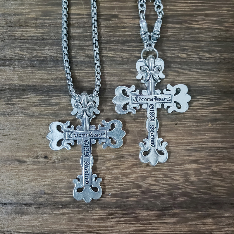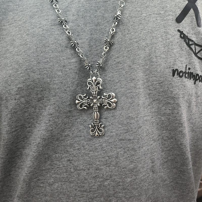合金镀银个性男小众女欧美朋克嘻哈毛衣链镂空克罗大十字架项链