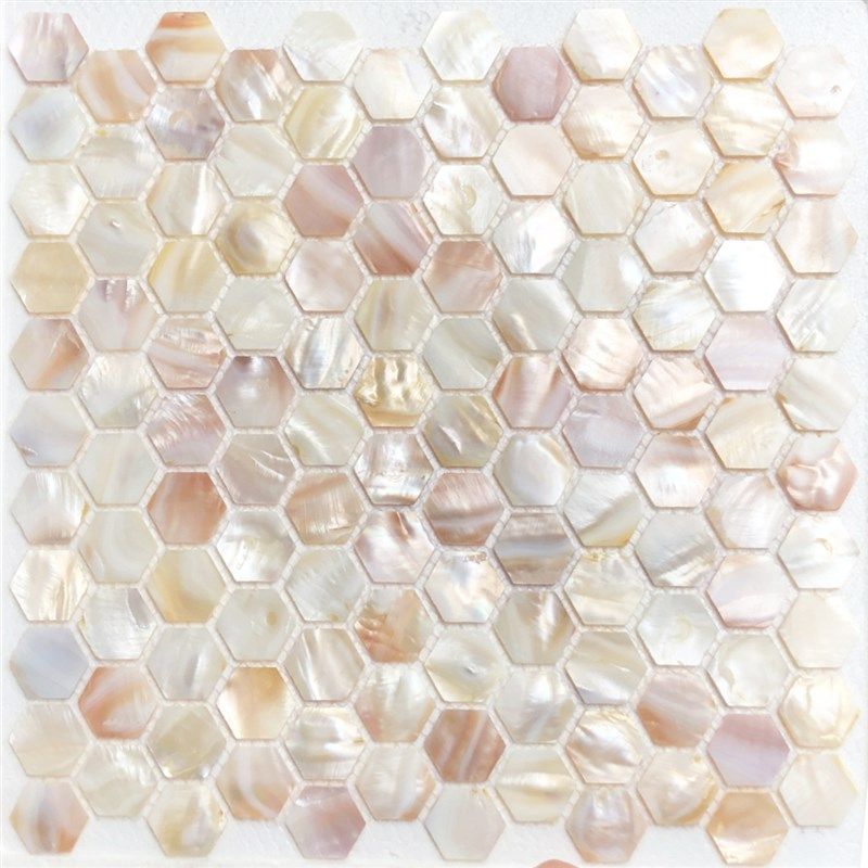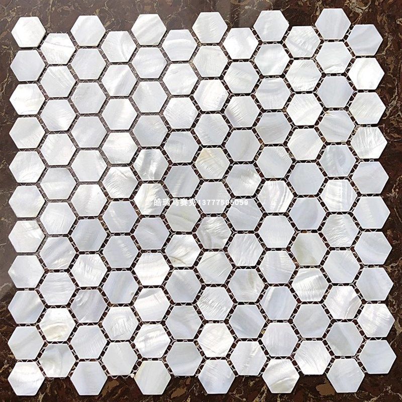 新六角形贝壳马赛克超白色卫生间鱼池瓷砖M酒店背景墙六边形墙贴