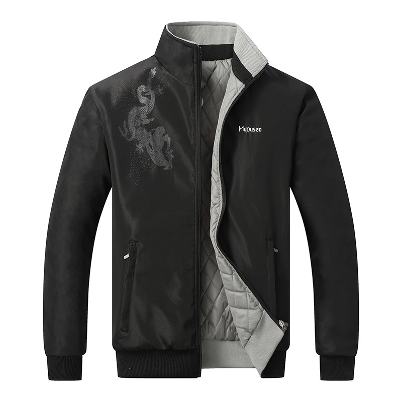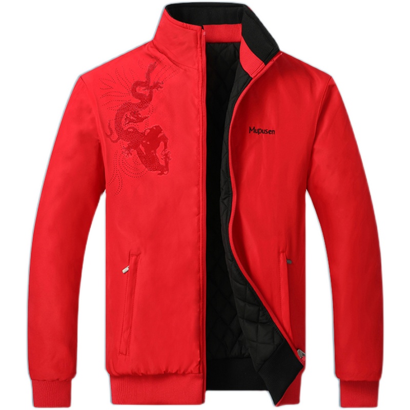 冬季加棉加厚外套男立领防风棉衣红色喜庆龙年本命年双面穿棉夹克