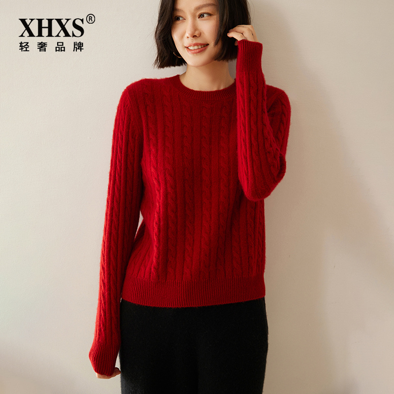 鄂尔多斯市羊绒衫女秋冬季新款加厚保暖麻花针织衫百搭洋气羊毛衫