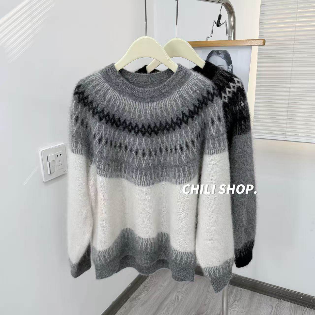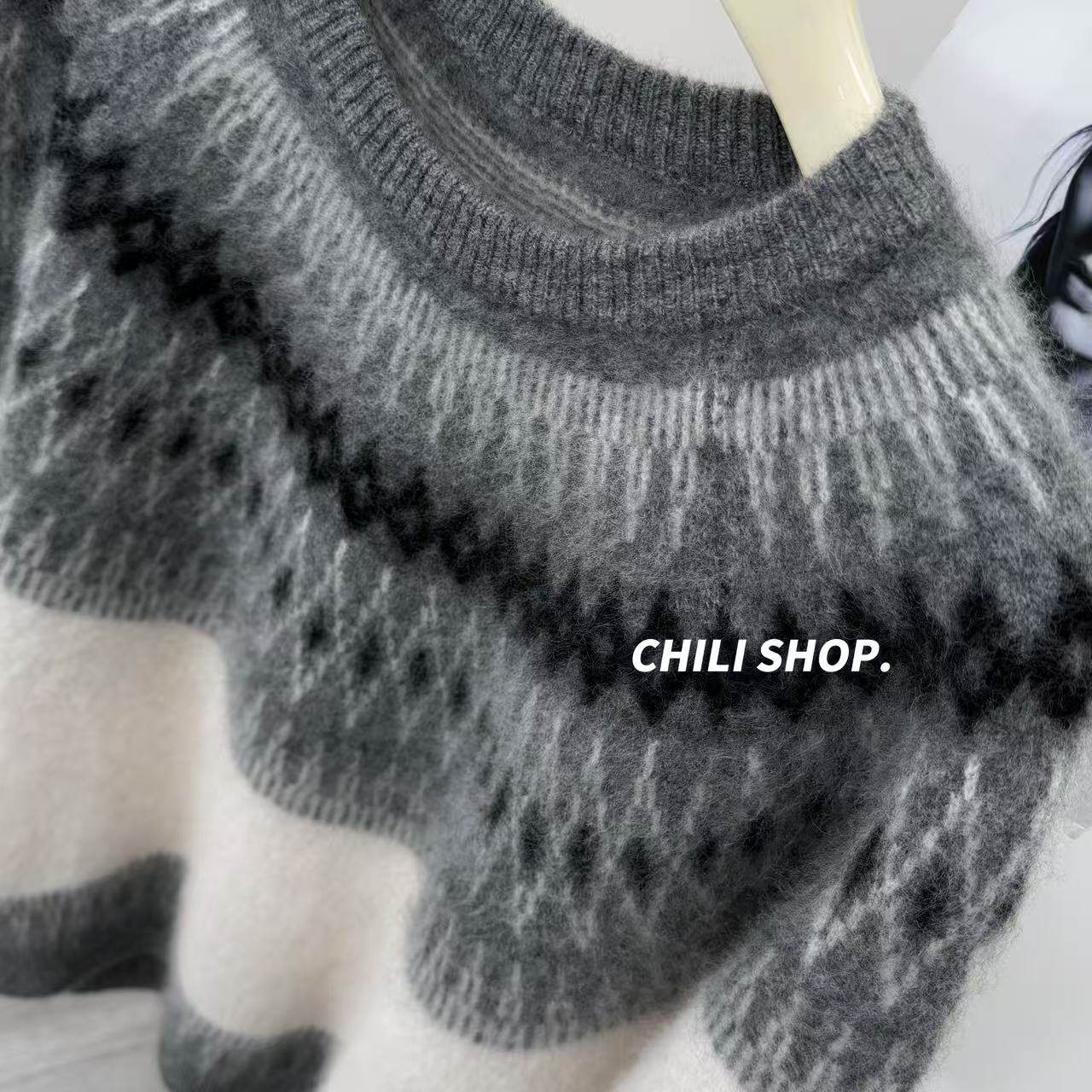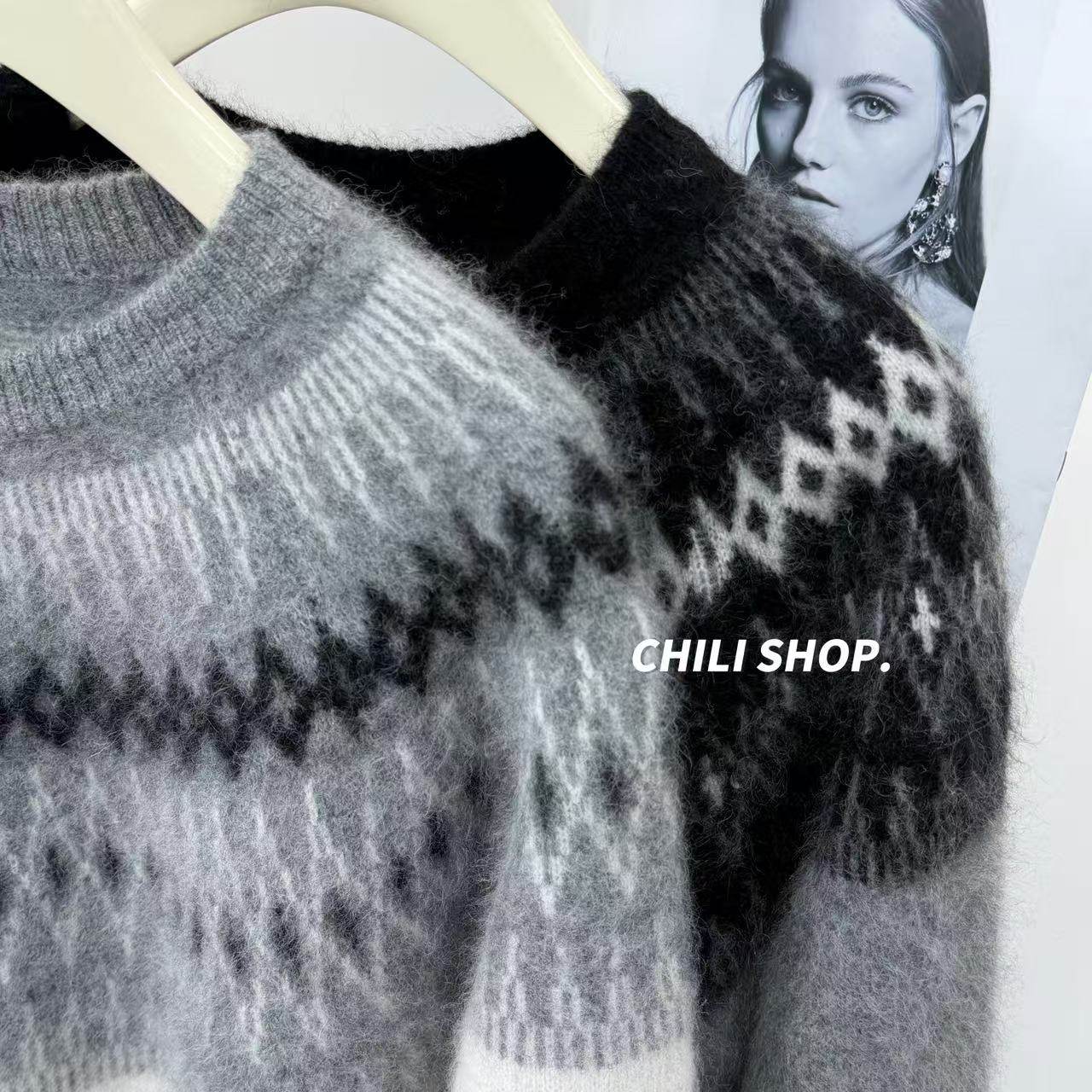 【英英Chili】山羊绒羊毛拉绒费尔岛复古风简约针织毛衣J 11.21