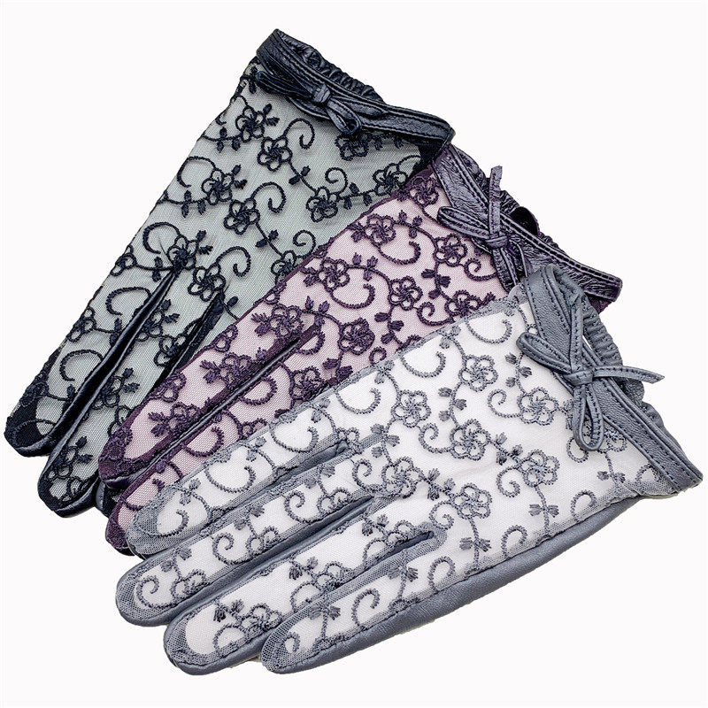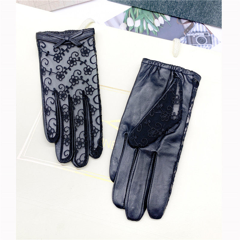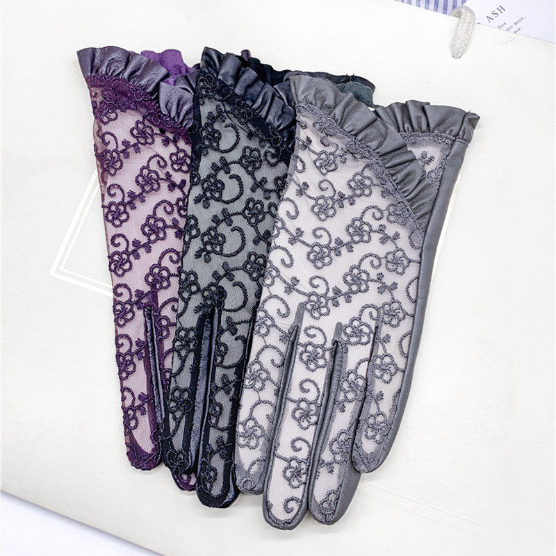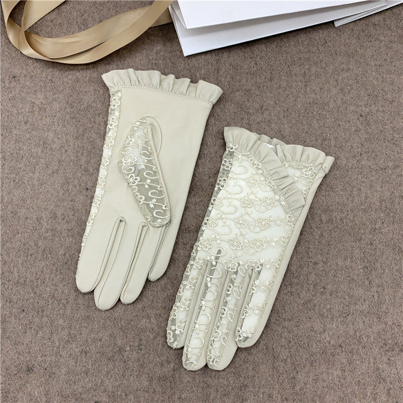 蕾丝防晒羊皮手套女士夏季薄款开车骑车驾驶触屏短款可爱韩版修手