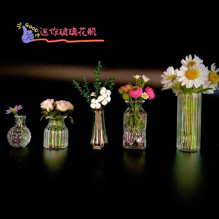 迷你小布娃娃屋摆设简约大气场景道具手工微缩世界玻璃插花瓶模型