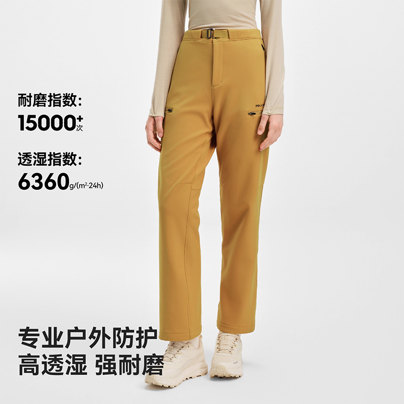 伯希和户外软壳裤女新款高弹透气运动裤耐磨徒步登山裤直筒休闲裤
