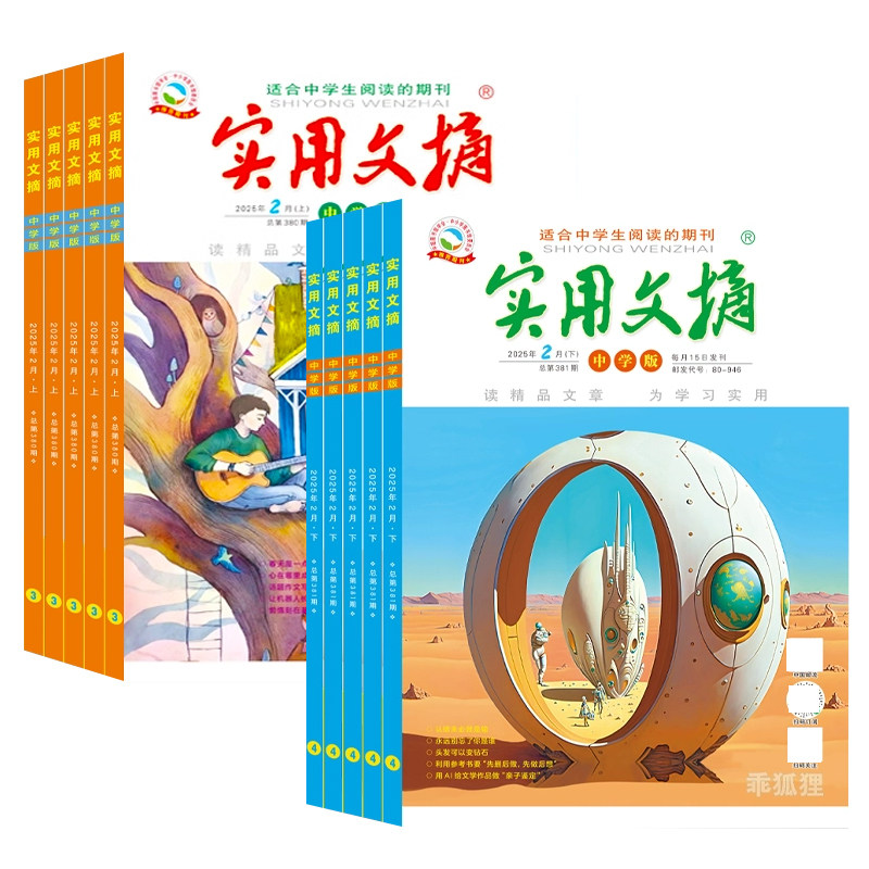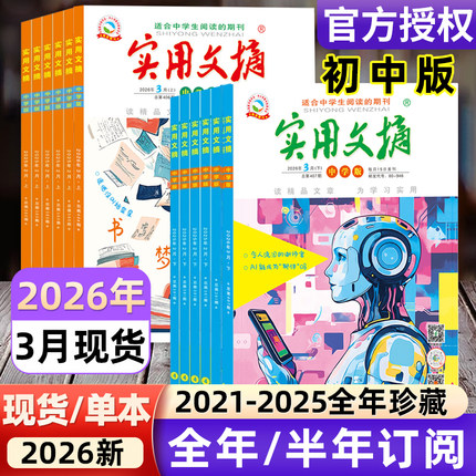 实用文摘中学版初中版2026年1-12月/2025全年/半年订阅/2021年-2024年过刊/15周年ABCD7-9年级初中生中考高分作文素材杂志青少年
