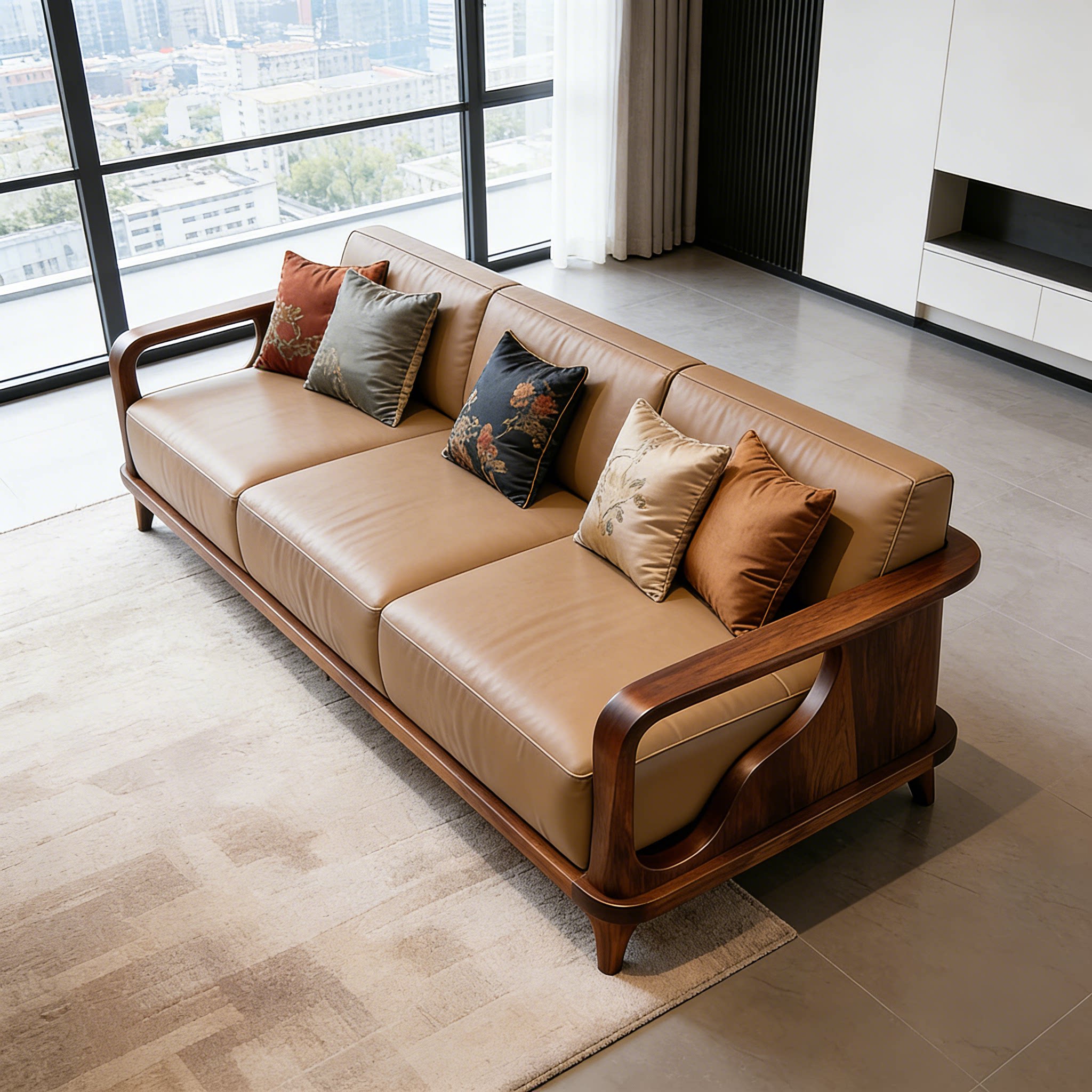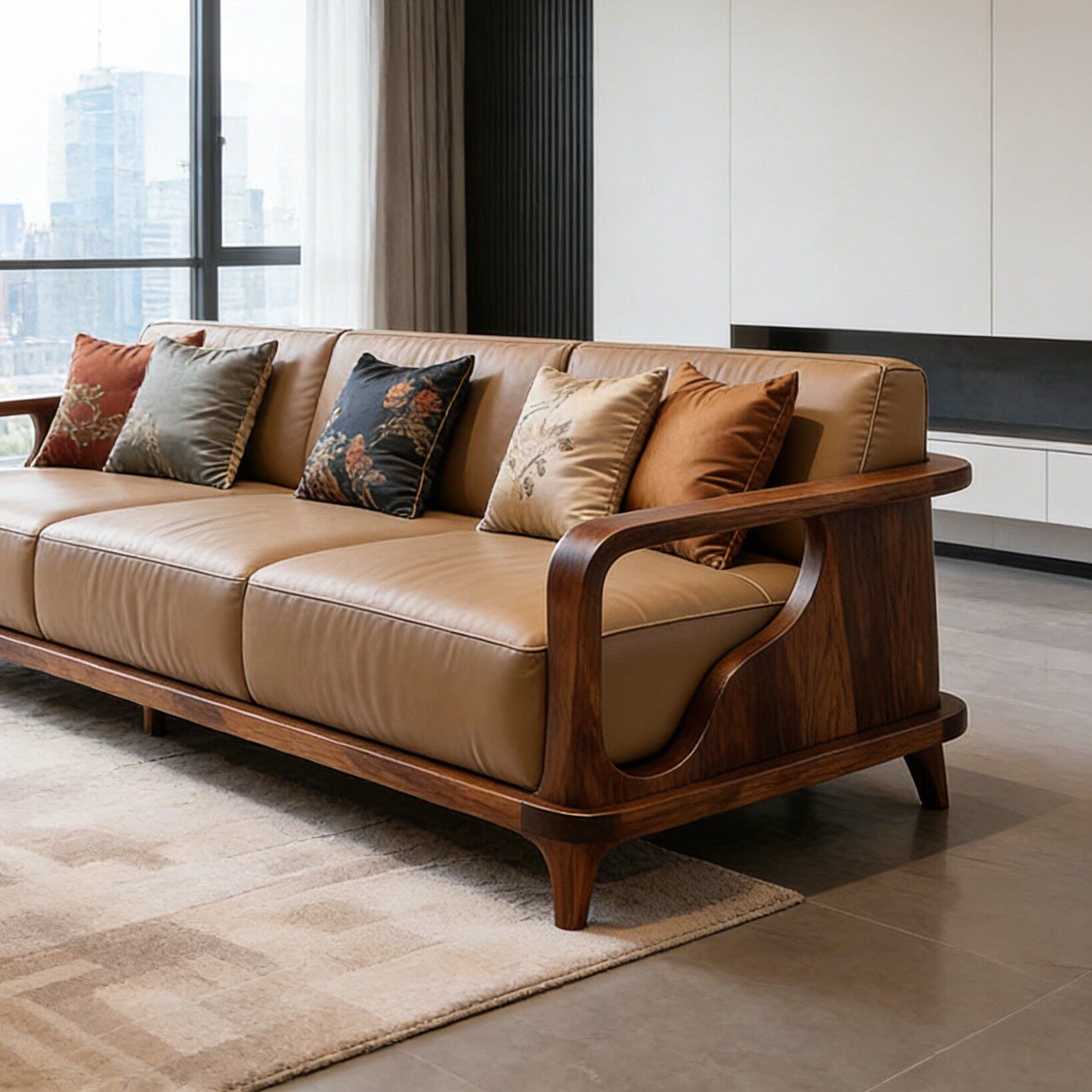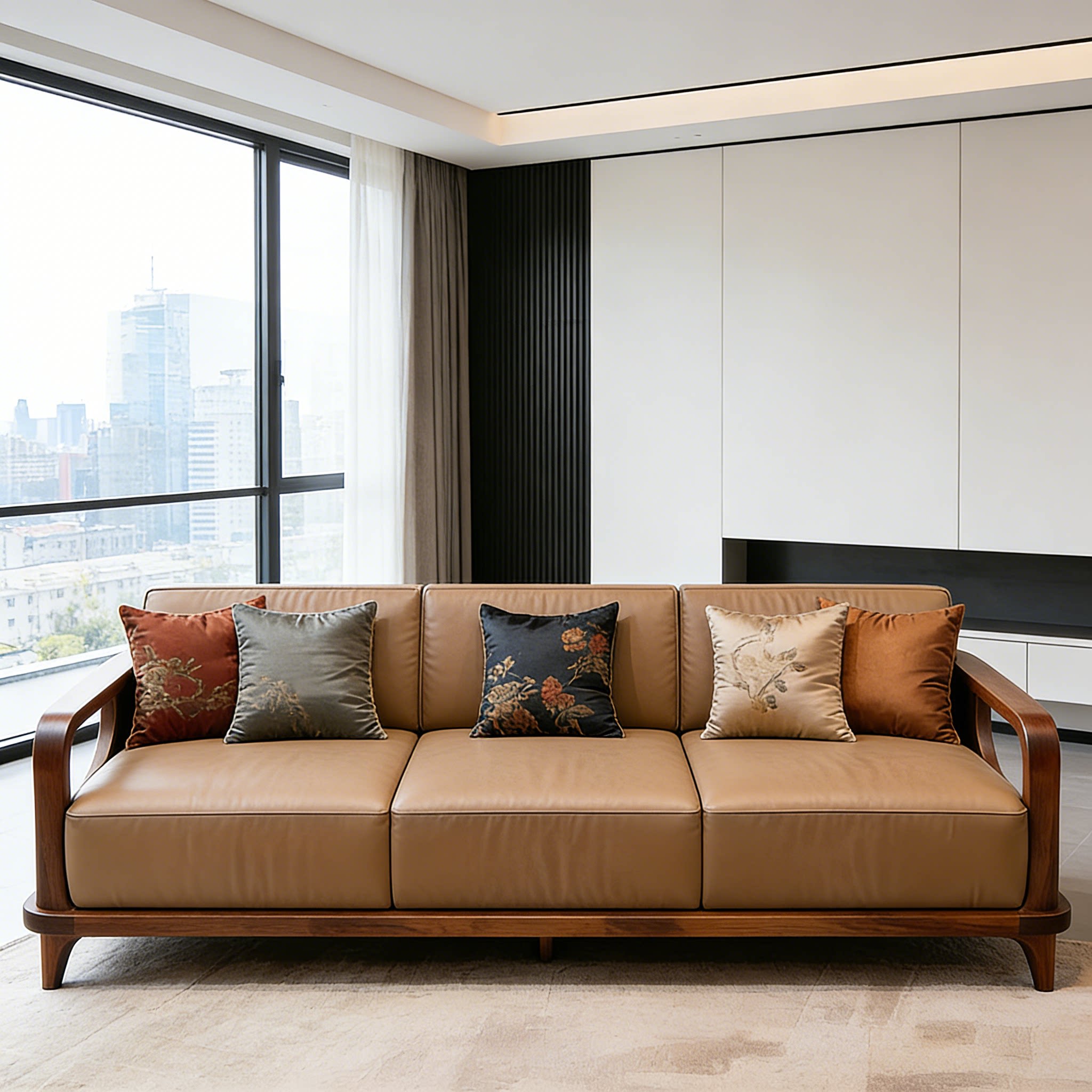 宋式美学黑胡桃白蜡木沙发2026商务休闲高端定制皮艺设计师家具