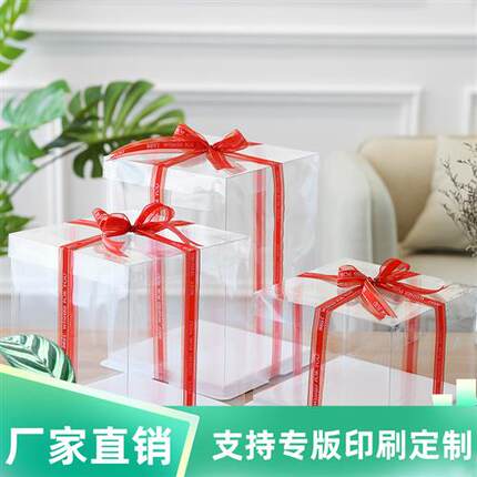 网红透明4/6寸8寸10寸12寸双层加高生日蛋糕盒包装盒子定制一次性