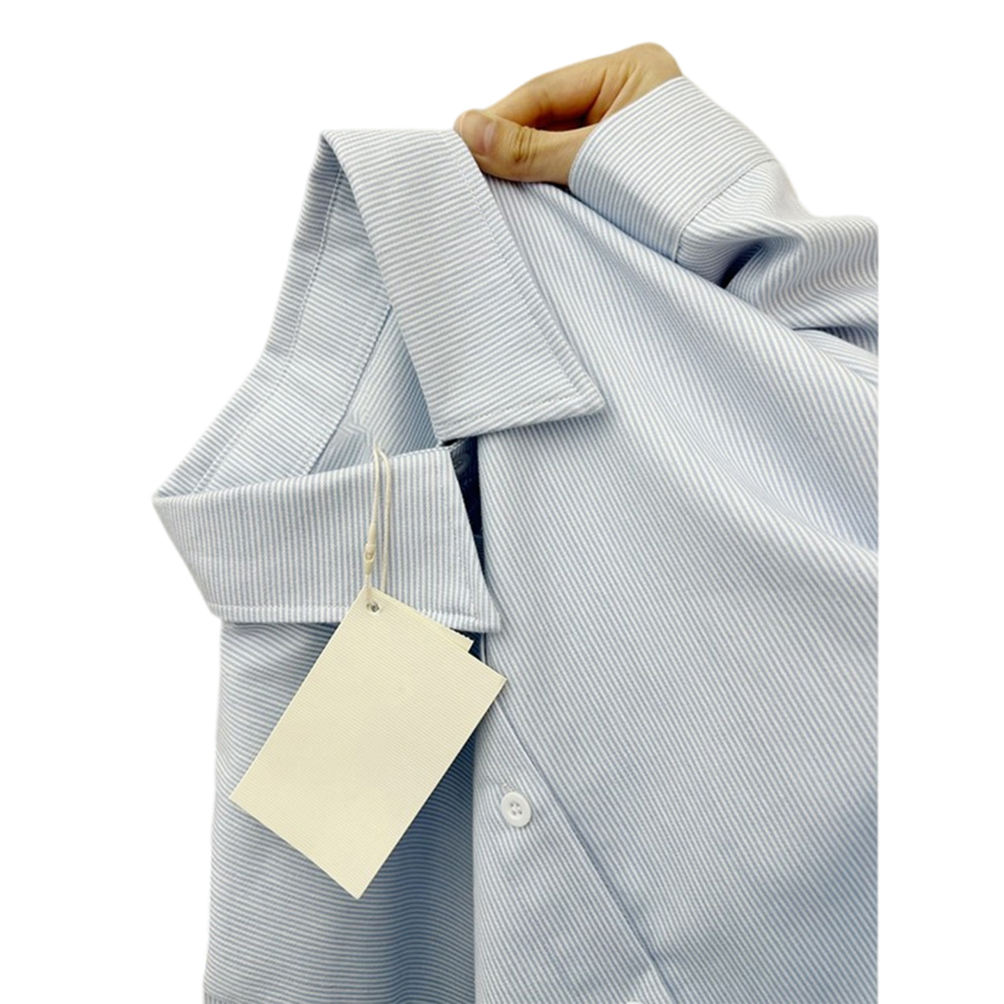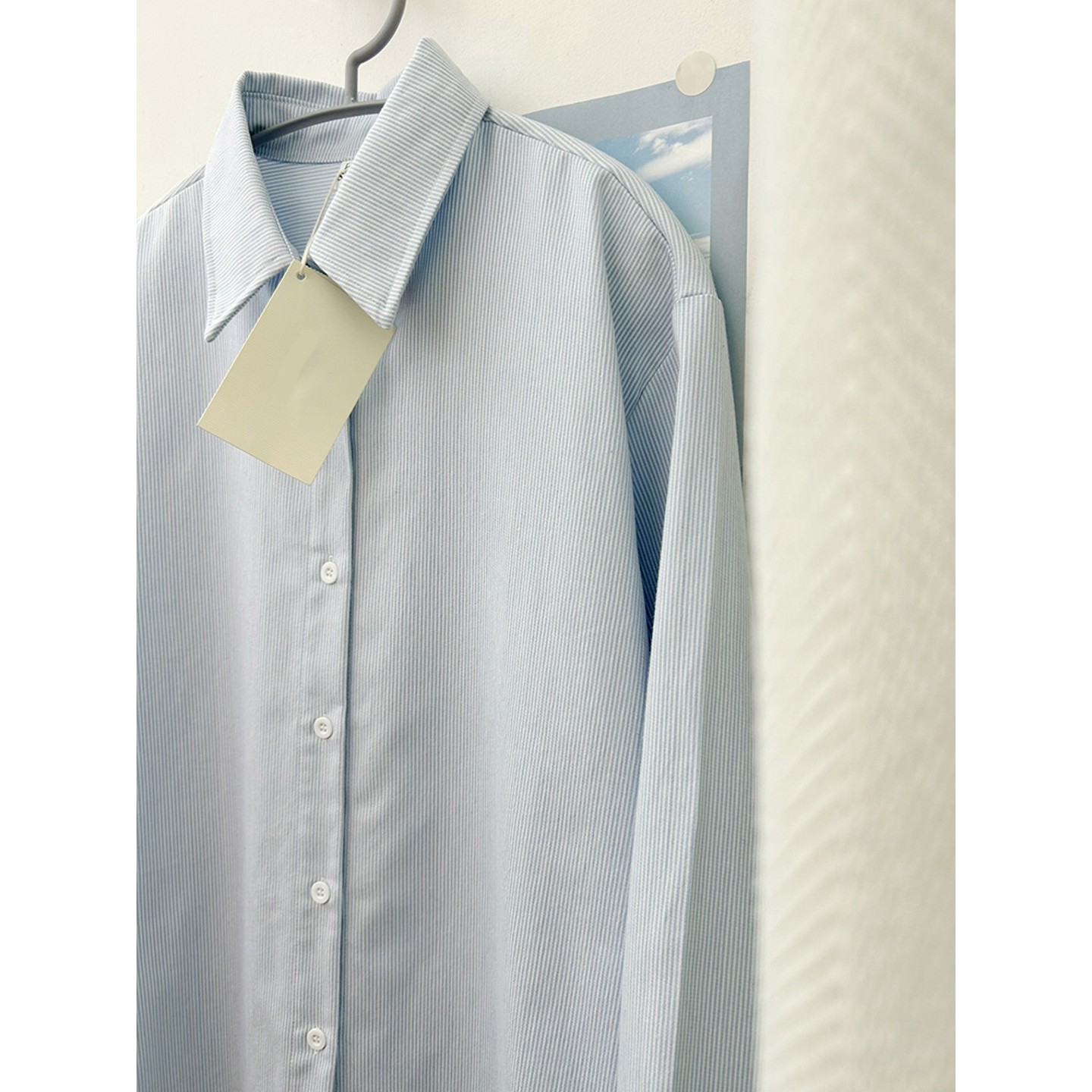 拉夏贝尔蓝色条纹衬衫女秋冬2025新款打底衬衣叠穿内搭长袖上衣