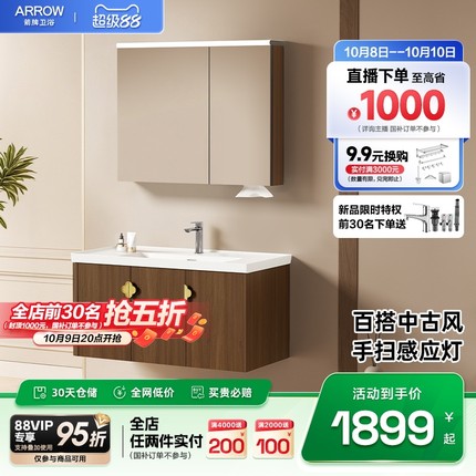 【新品上市!】箭牌卫浴中古风卫生间洗手盆陶瓷一体盆浴室柜组合