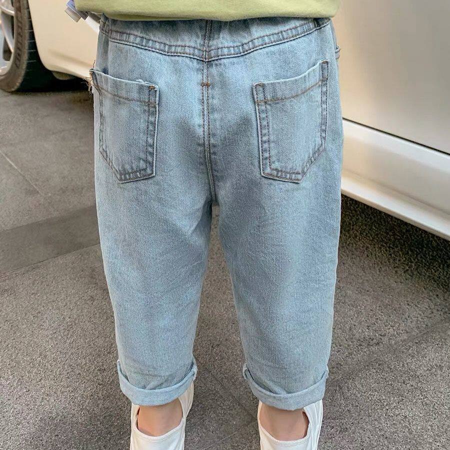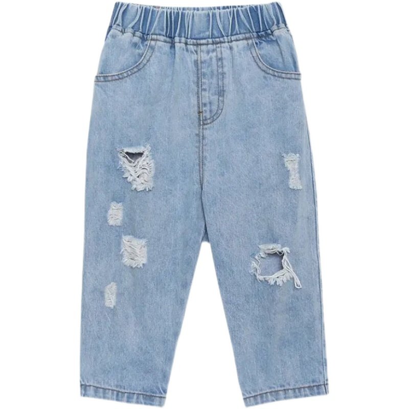 巴拉可儿男女中小童破洞牛仔裤韩版九分裤春夏新薄款纯棉休闲裤潮
