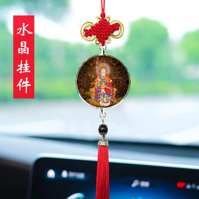 地藏王菩萨汽车挂件乞叉底蘖婆禅杖唐卡画像佛车载水晶车内吊饰