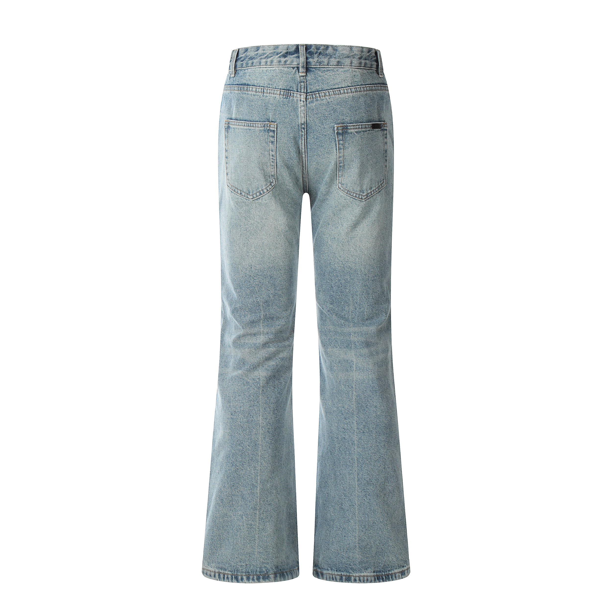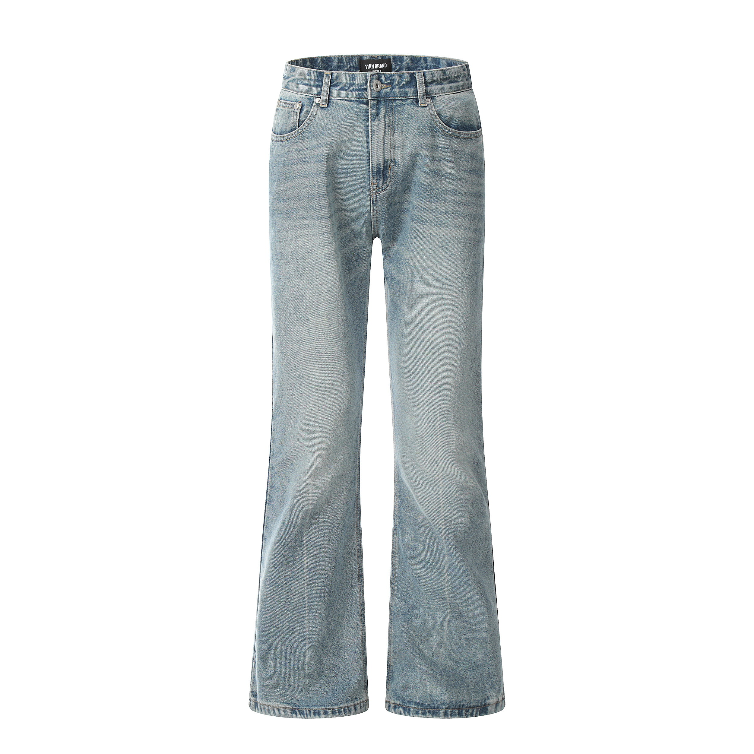 ZLAYCO水洗蓝色微喇牛仔裤男cleanfit高个子高街修身百搭休闲长裤