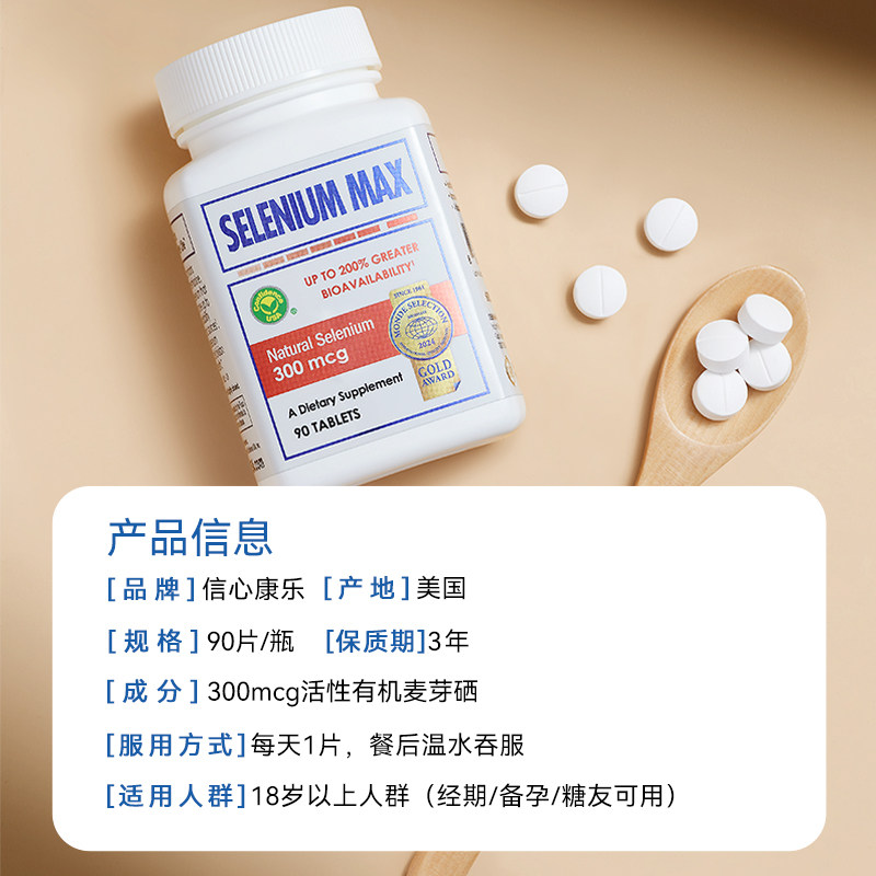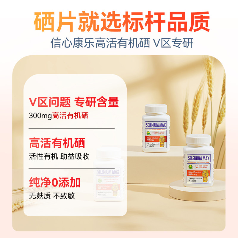 信心康乐麦芽硒硒片补硒片有机硒元素免疫力女性补充晒片富硒美国