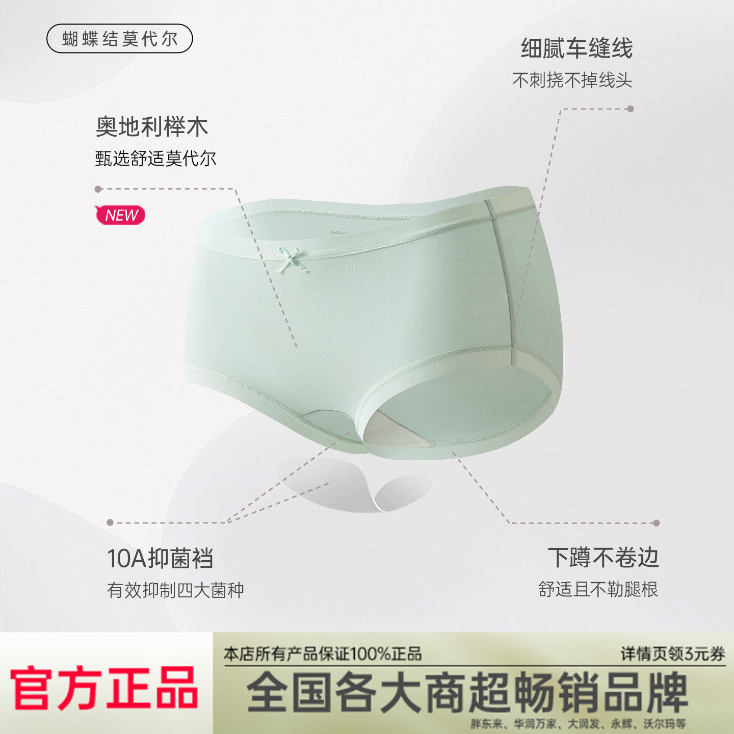 蝶安芬桑蚕丝裆莫代尔女士内裤女无痕三角裤夏季少女蝴蝶结短裤