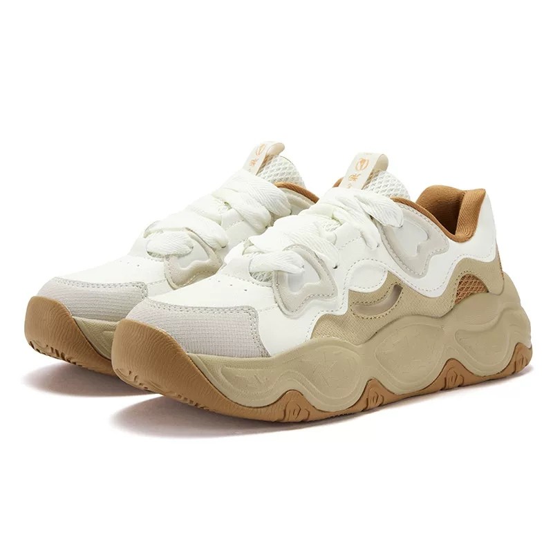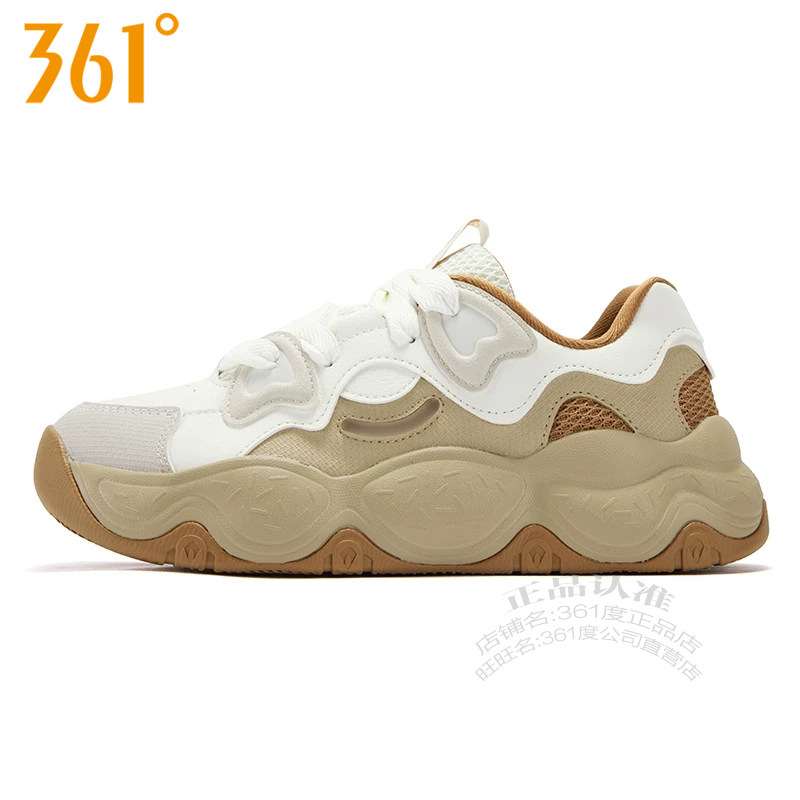 361度女鞋板鞋2025冬季新款361老爹鞋厚底增高软弹皮面防雨水6616