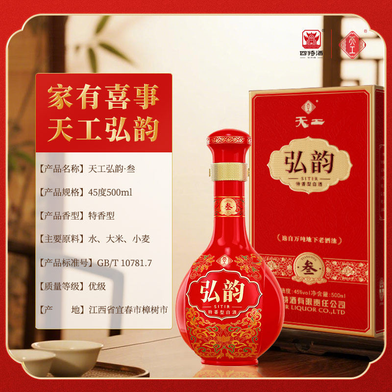 官方正品四特酒天工弘韵·叁 45度500mL纯粮特香型白酒浓酱清三香