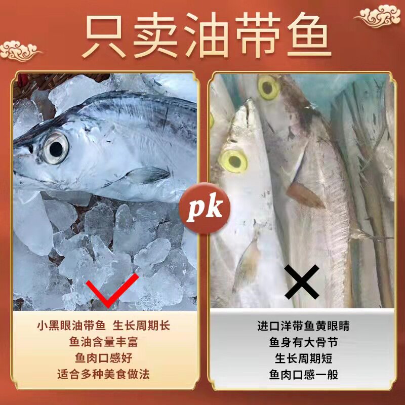 带鱼新鲜冷冻整条小眼油带鱼精选带鱼半斤左右大带鱼山东刀鱼