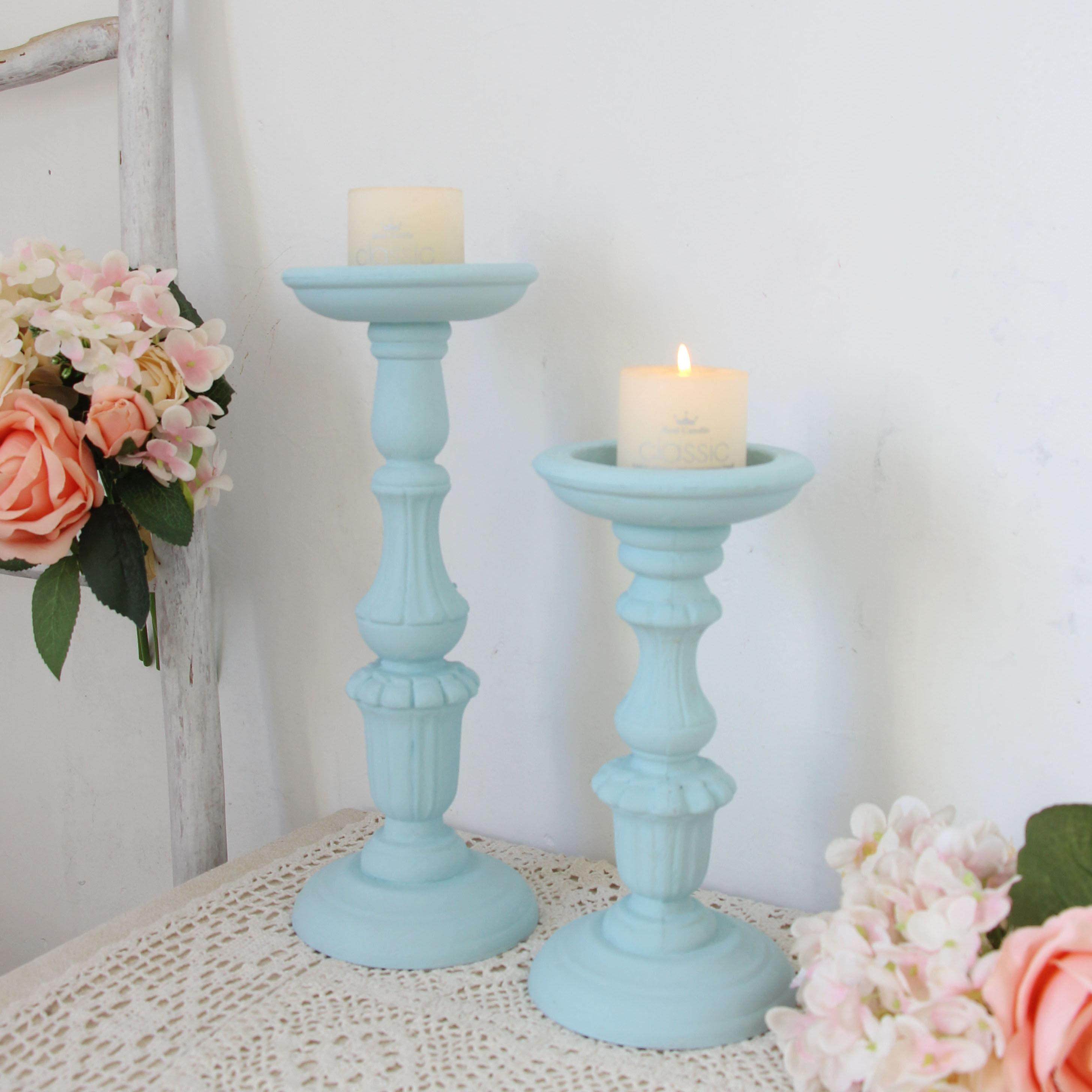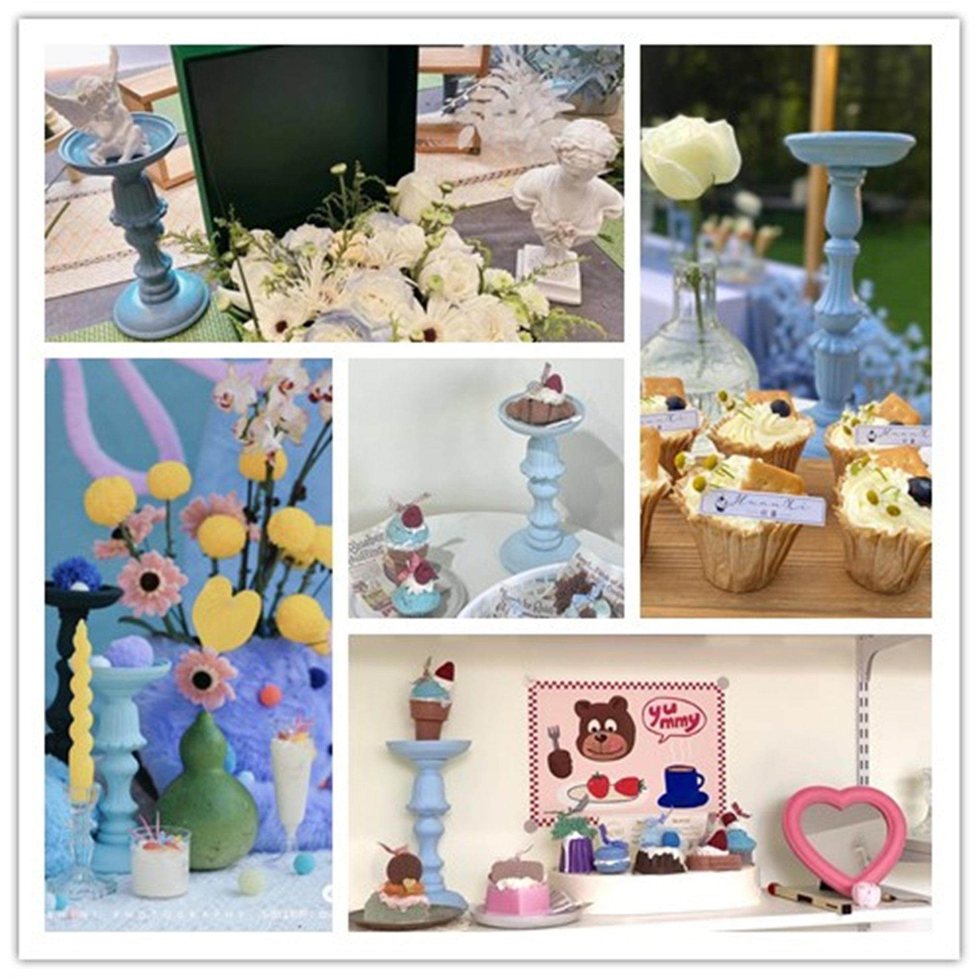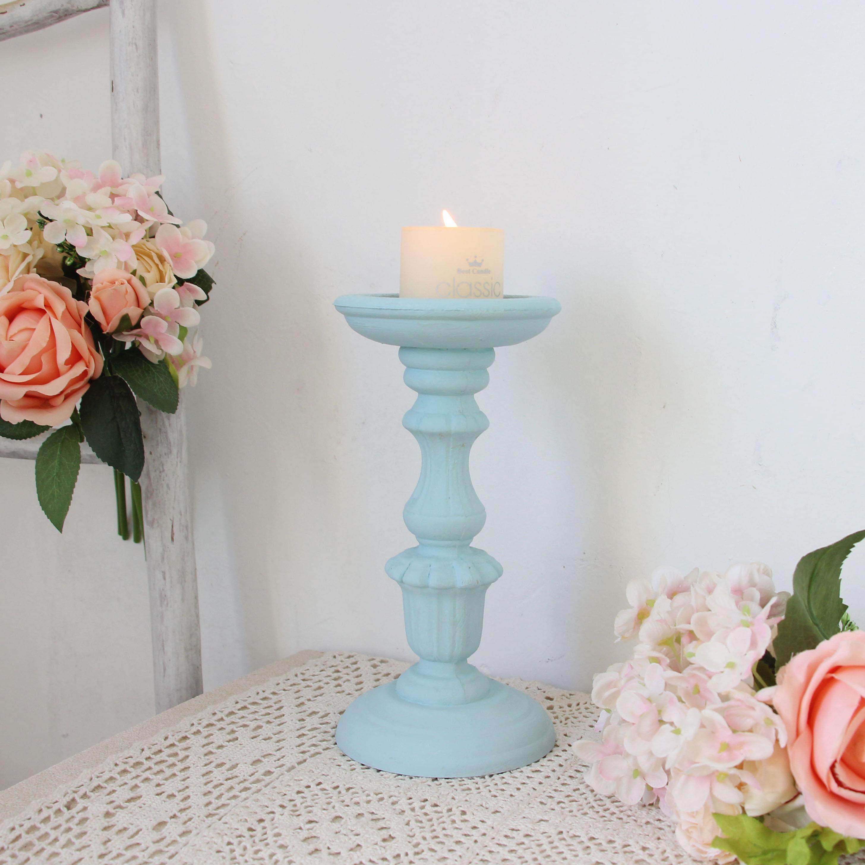 马拉卡色系蓝色北欧覆古烛台摆件木质蜡烛台客厅民宿装饰品摆件