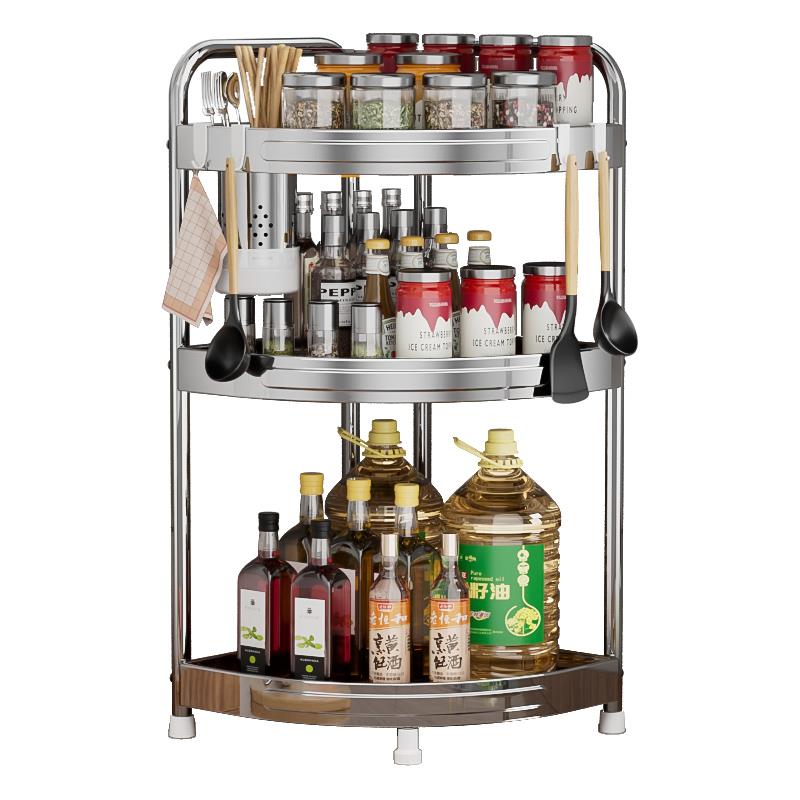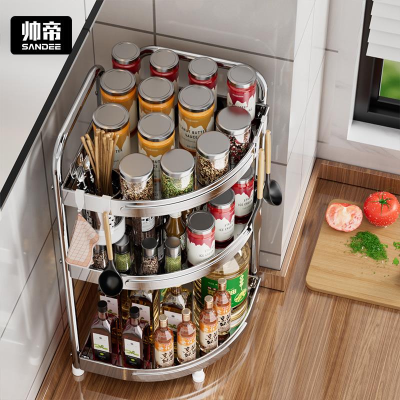 不锈钢厨房调料置物架家用厨具调味瓶罐三角架台面多层转角收纳层